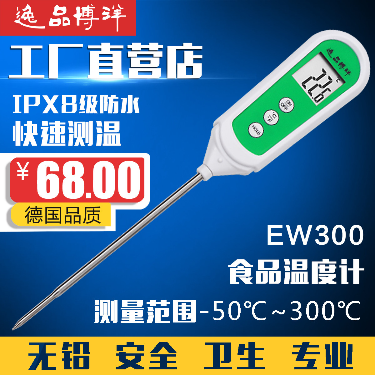 --------------------- 逸品博洋高精度厨房食品防水电子温度计水温油温奶温烘焙家用针式 【原售价】68元 【现售价】68元 【推荐理由】