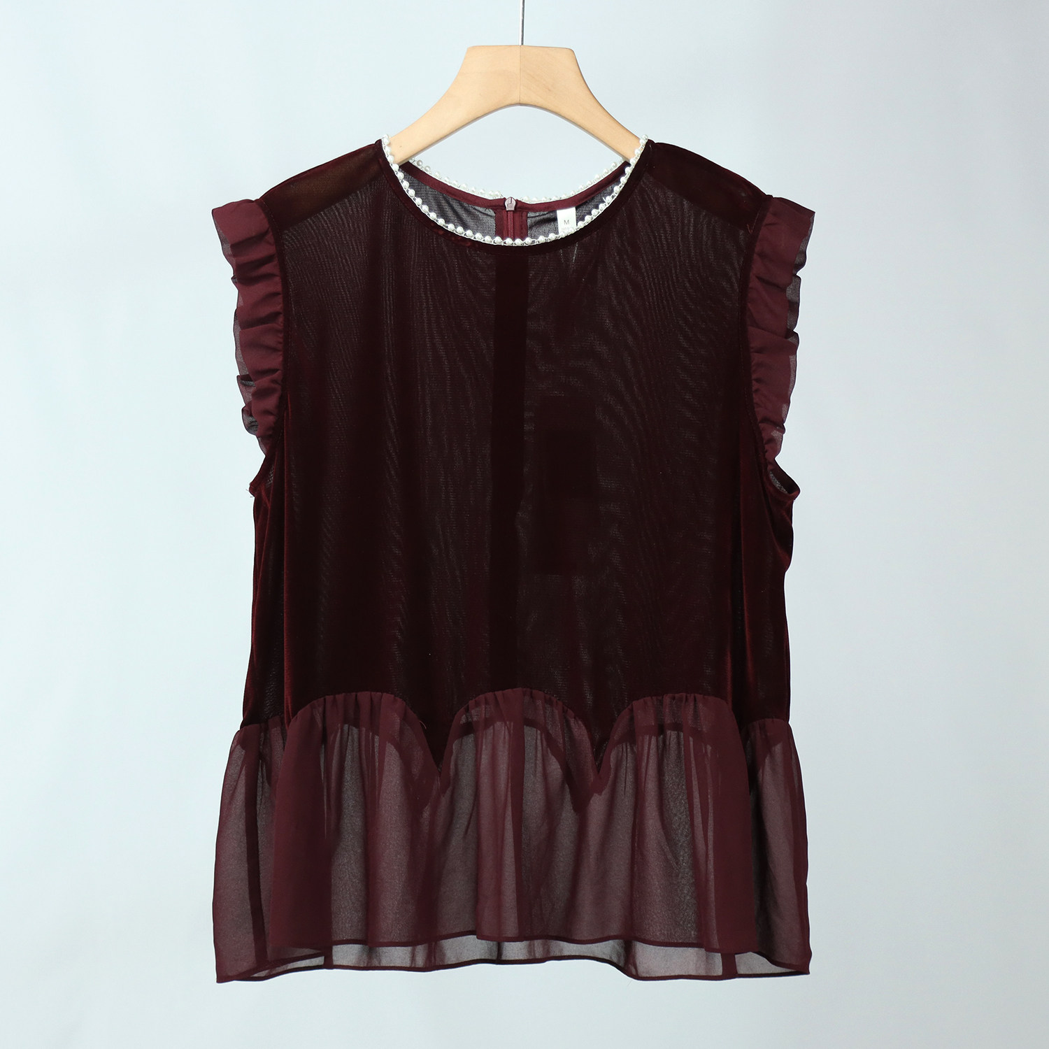 --------------------- 298设计感高端纯色气质圆领丝绒拼接短袖T恤宽松显瘦小衫上衣 【原售价】55.9元 【现售价】46.2元 【推荐理由】