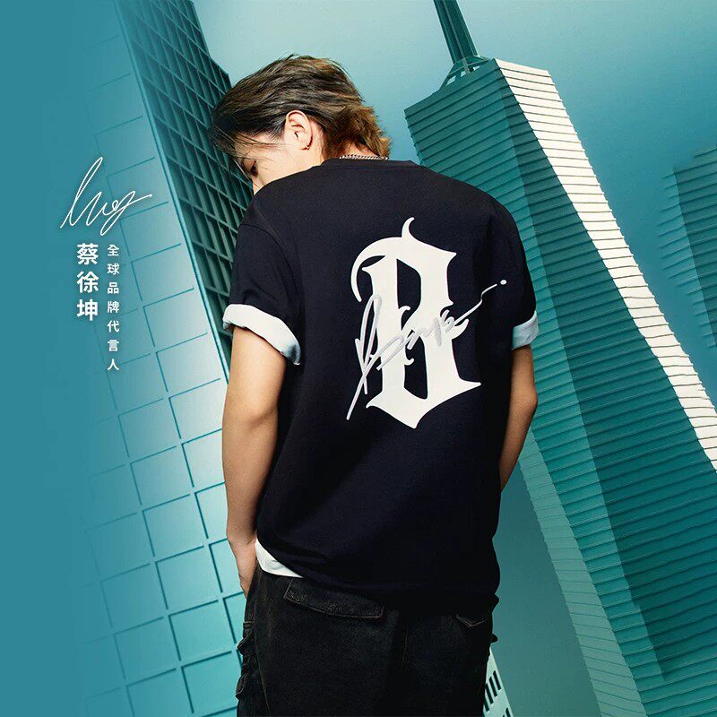 淘宝【蔡徐坤同款】BONELESS哥特B签字印花短袖T恤宽松情侣百搭上衣