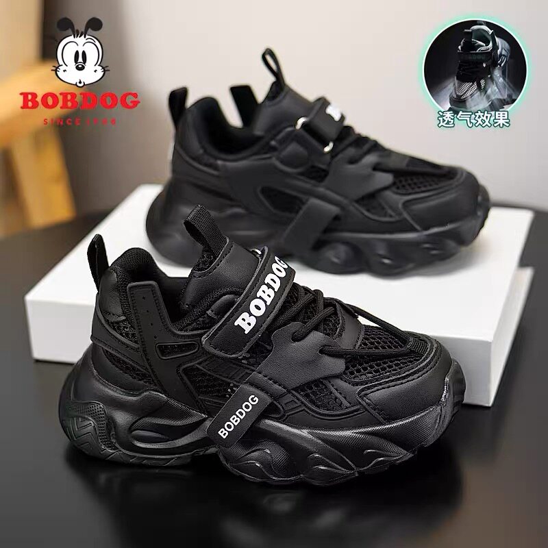 巴布豆童鞋男童黑色运动鞋2026夏季新款单网透气轻便儿童老爹鞋潮