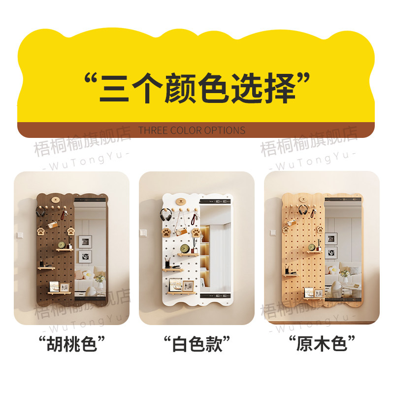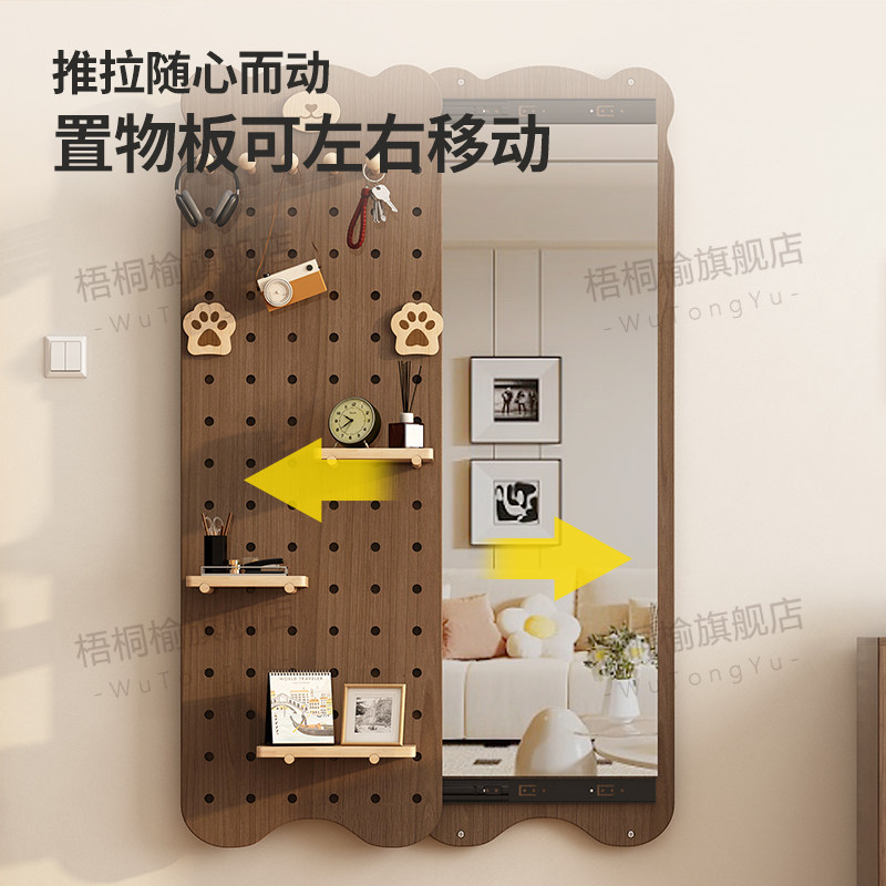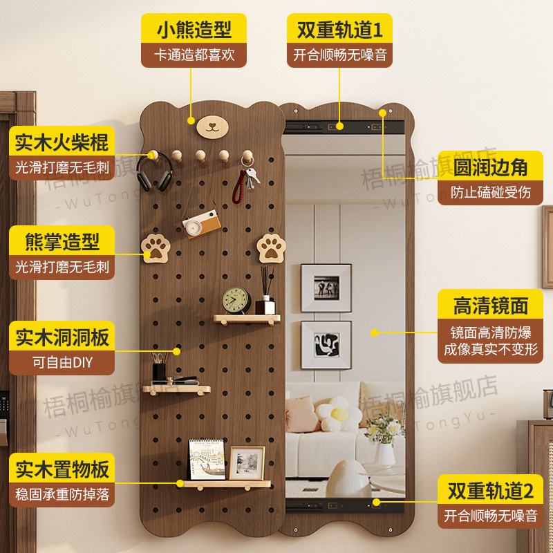 淘宝小熊穿衣镜隐藏式推拉全身镜子家用可关闭壁挂墙玄关洞洞板试衣镜