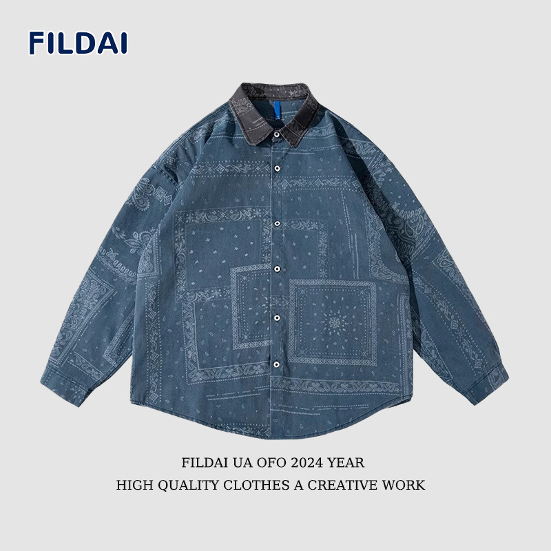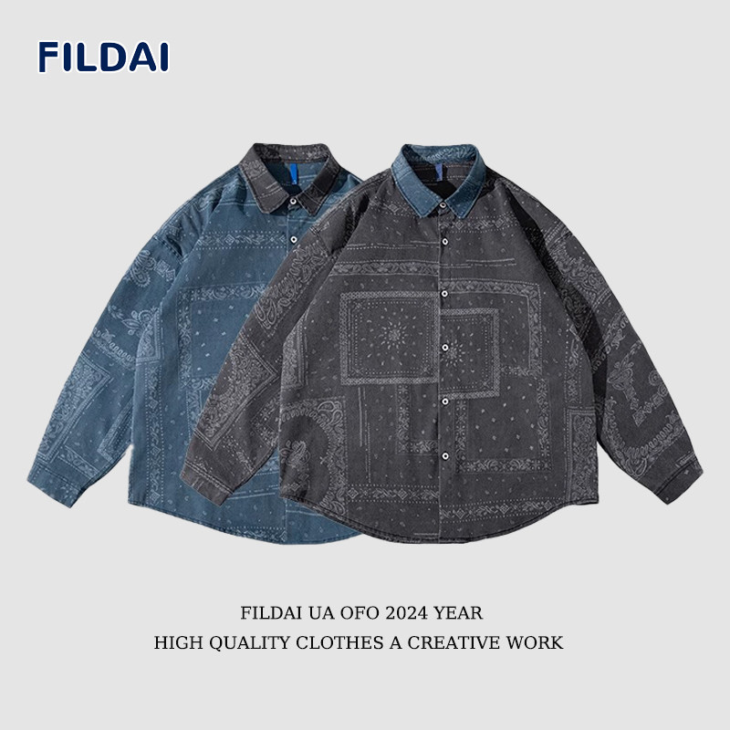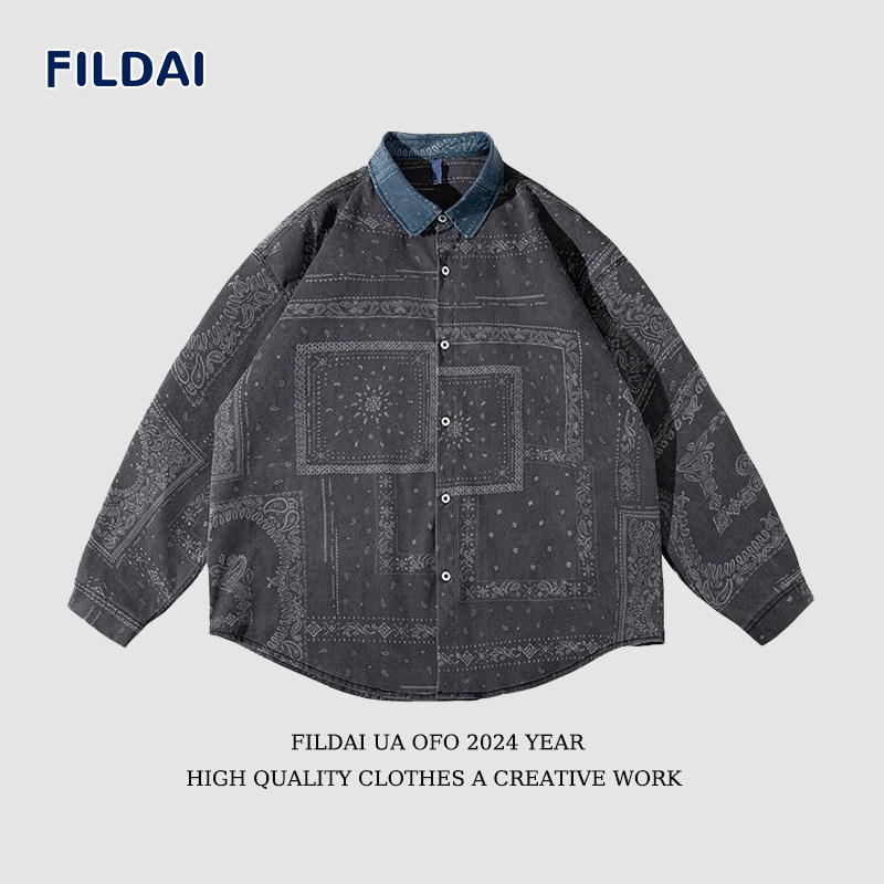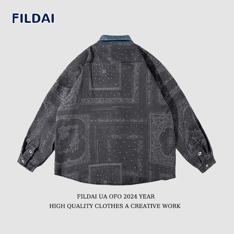 斐勒满天星国潮休闲情侣长袖衬衫男春季ins时尚宽松百搭衬衣外套