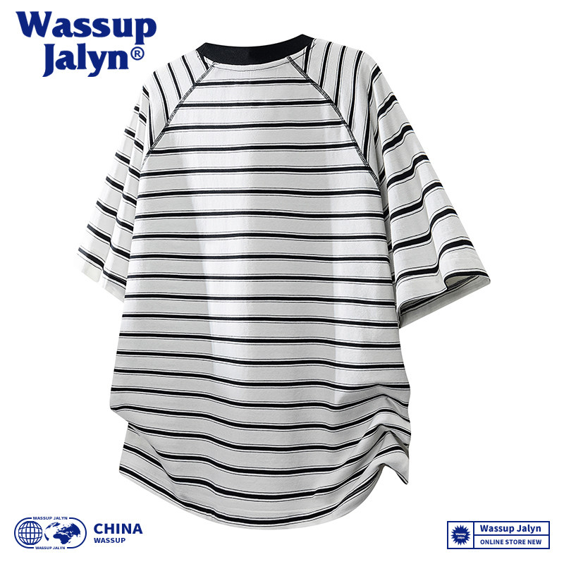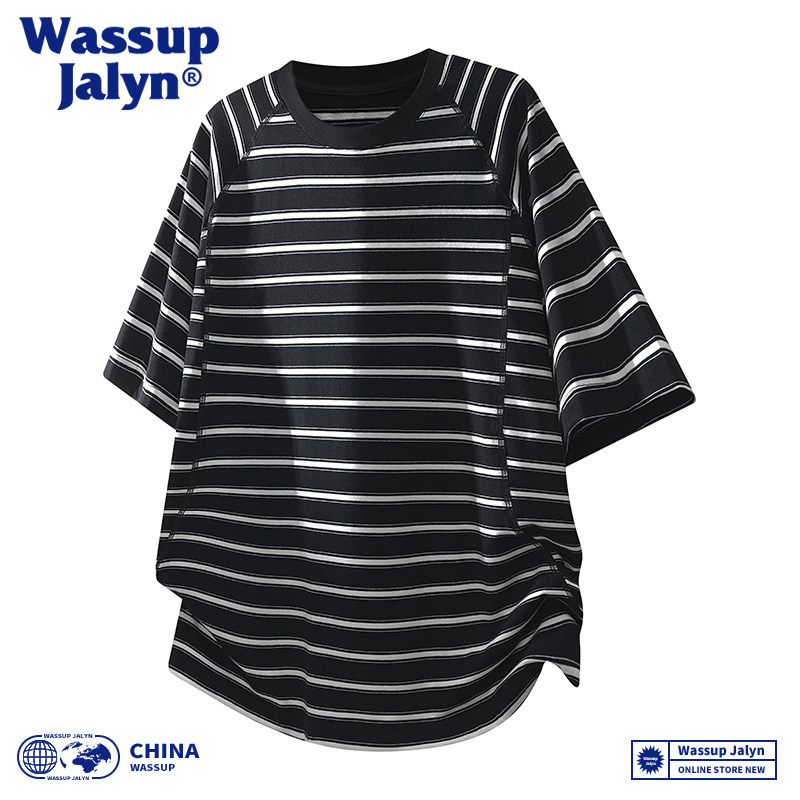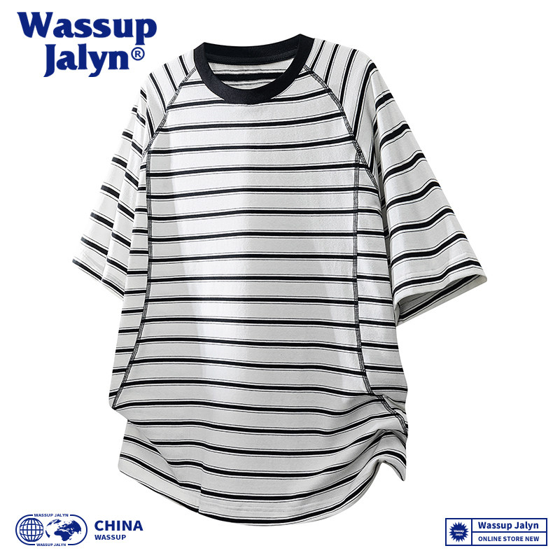 WASSUP JALYN撞色条纹T恤男短袖夏季新款圆领宽松半截袖男上衣服