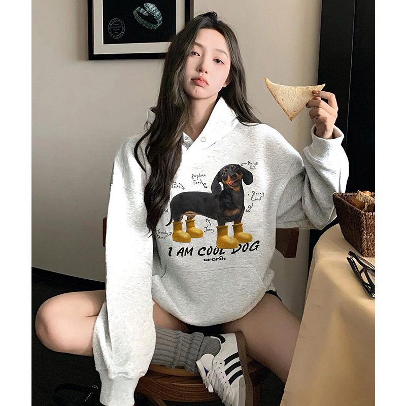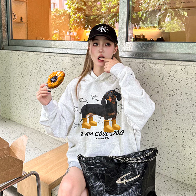 ARAR01“腊肠小狗”原创450g重磅国潮秋冬美式连帽卫衣服男女宽松