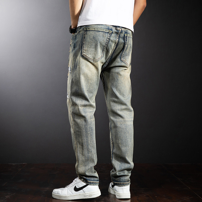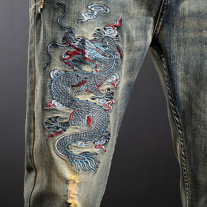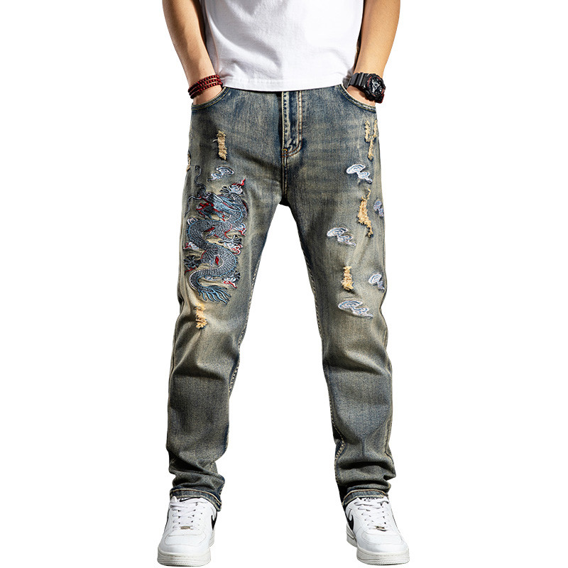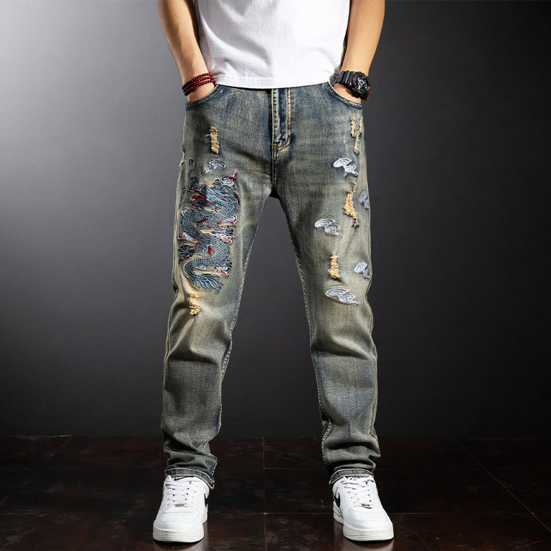 广州新塘刺绣牛仔裤男款潮款直筒宽松夏季薄款裤子高档潮牌牛子裤