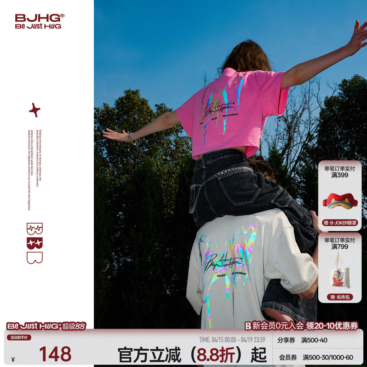 --------------------- BJHG不计后果反光蝴蝶t恤短袖男款夏季潮牌宽松运动情侣装T恤上衣 --------------------- --------------------- 【原价】169元 【券后价】138元