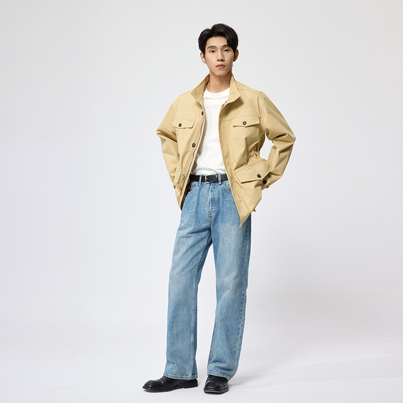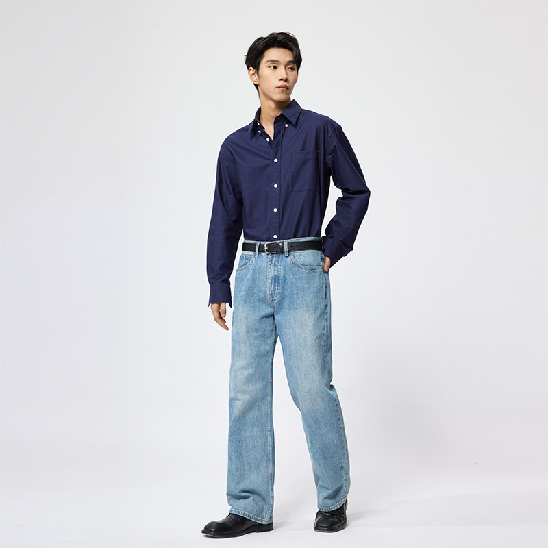 TUTM男装 竹节纹理纯棉面料基础款水洗牛仔裤男宽松直筒休闲长裤