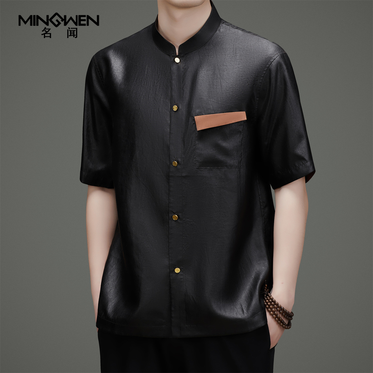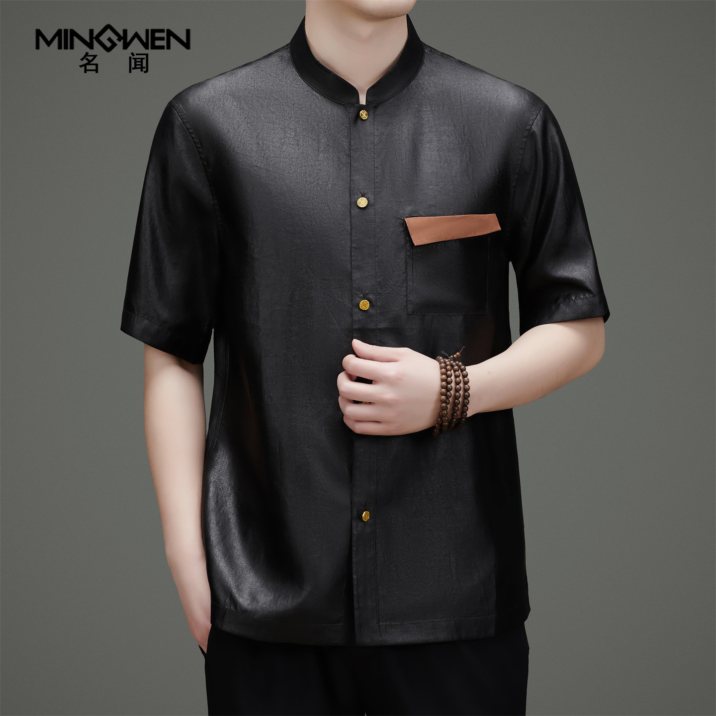 --------------------- 龟纹香云纱立领短袖衬衫男夏季时尚高级感新中式国潮风桑蚕丝衬衣 【原售价】1498元 【现售价】851元 【推荐理由】