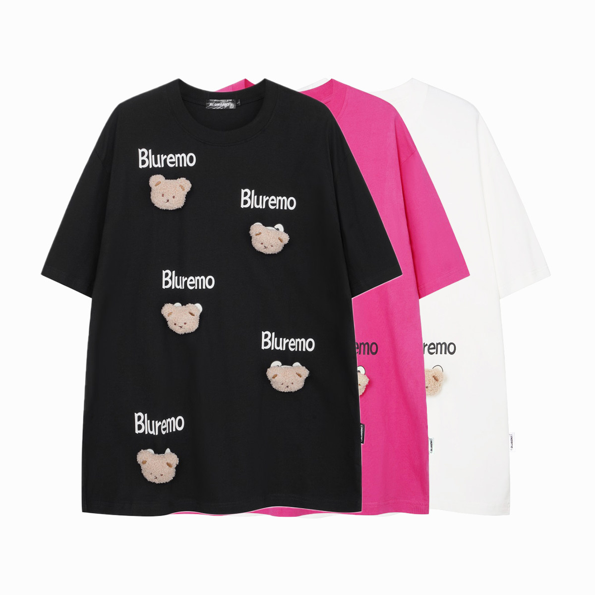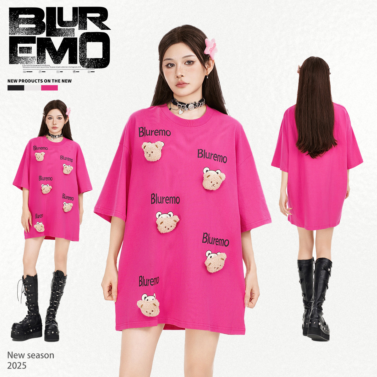 BLUREMO/模糊情绪2026春季新款纯棉个性街头小熊挂饰印花短袖T恤