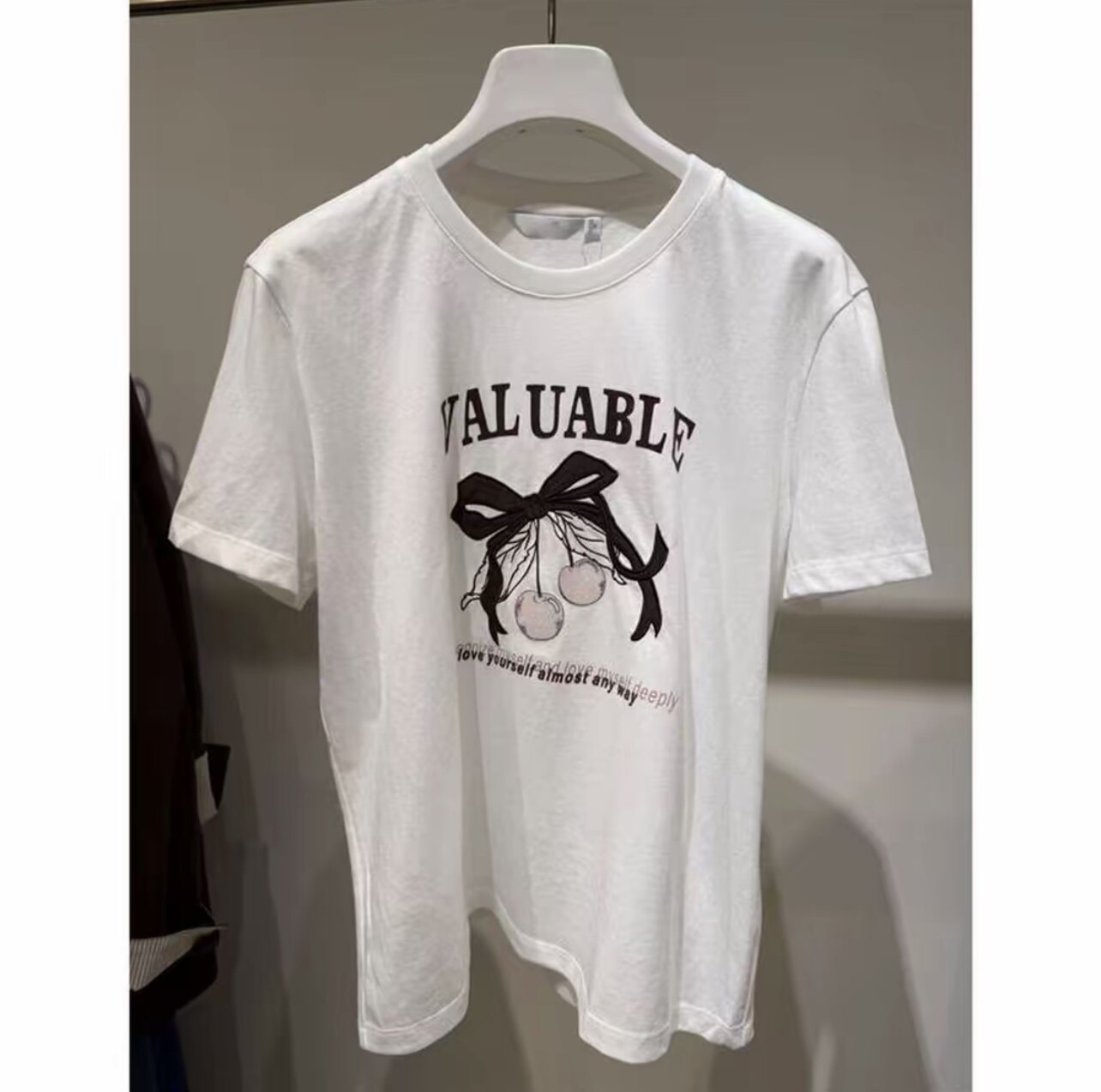 淘宝伊家商场同款26新白色圆领短袖T恤女印花图案宽松上衣女