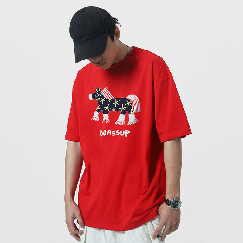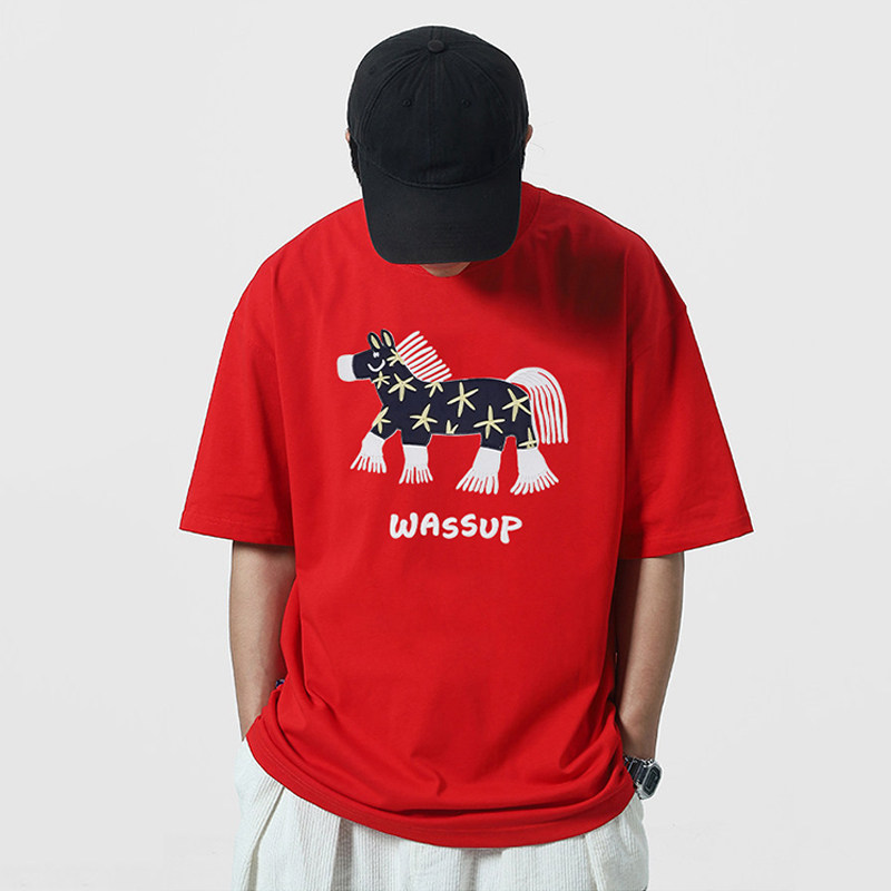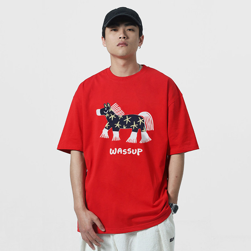 --------------------- WASSUP中国红马年贴片绣花短袖T恤男夏季2026新款情侣体恤衫上衣 --------------------- --------------------- 【原价】128元 【券后价】67.4元