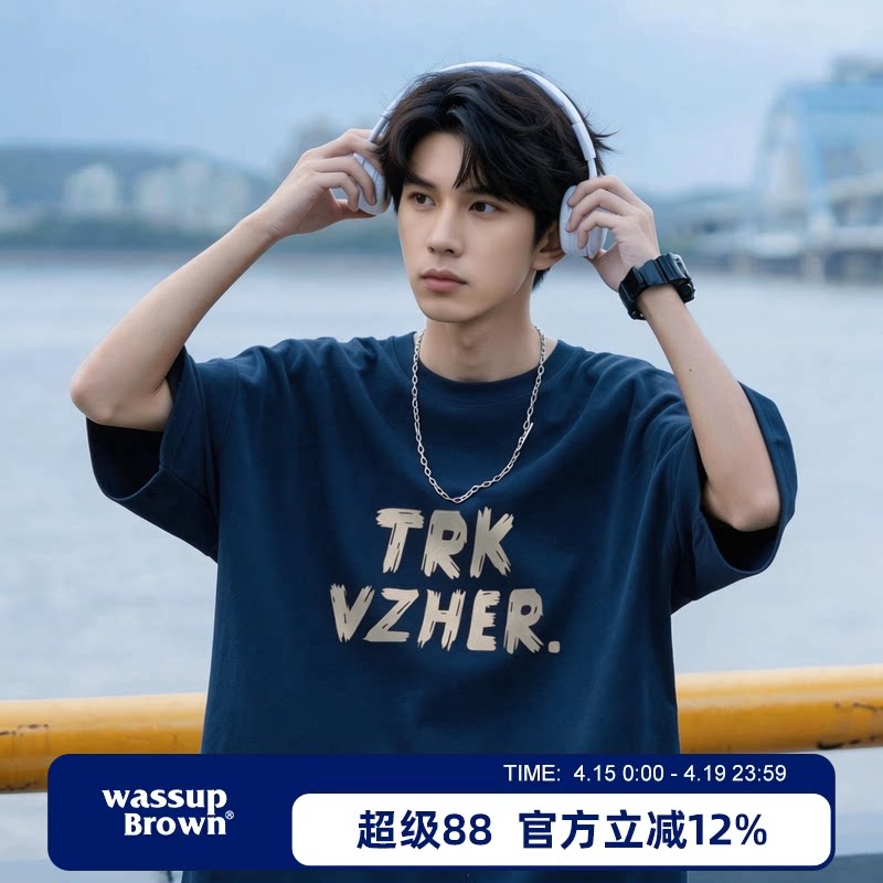--------------------- WASSUP BROWN藏青色短袖t恤男夏季新款美式重磅纯棉宽松半袖体恤 【原售价】49元 【现售价】43.1元 【推荐理由】