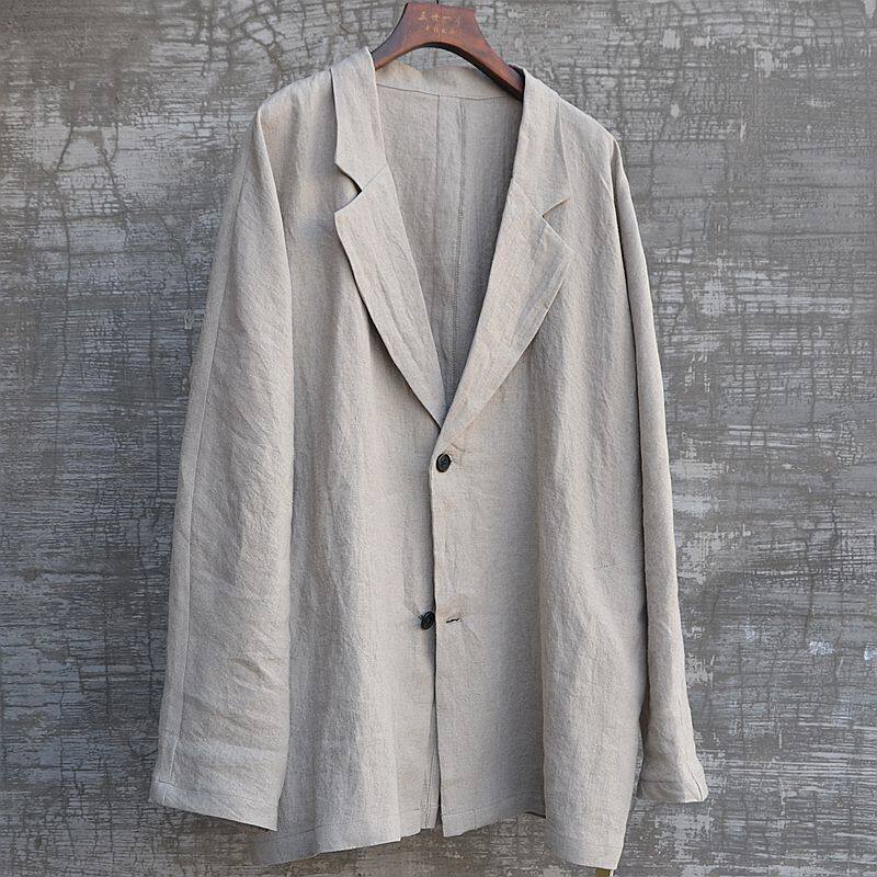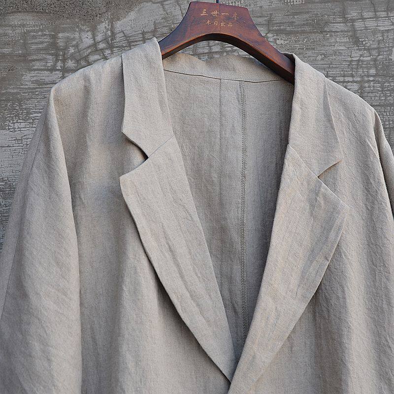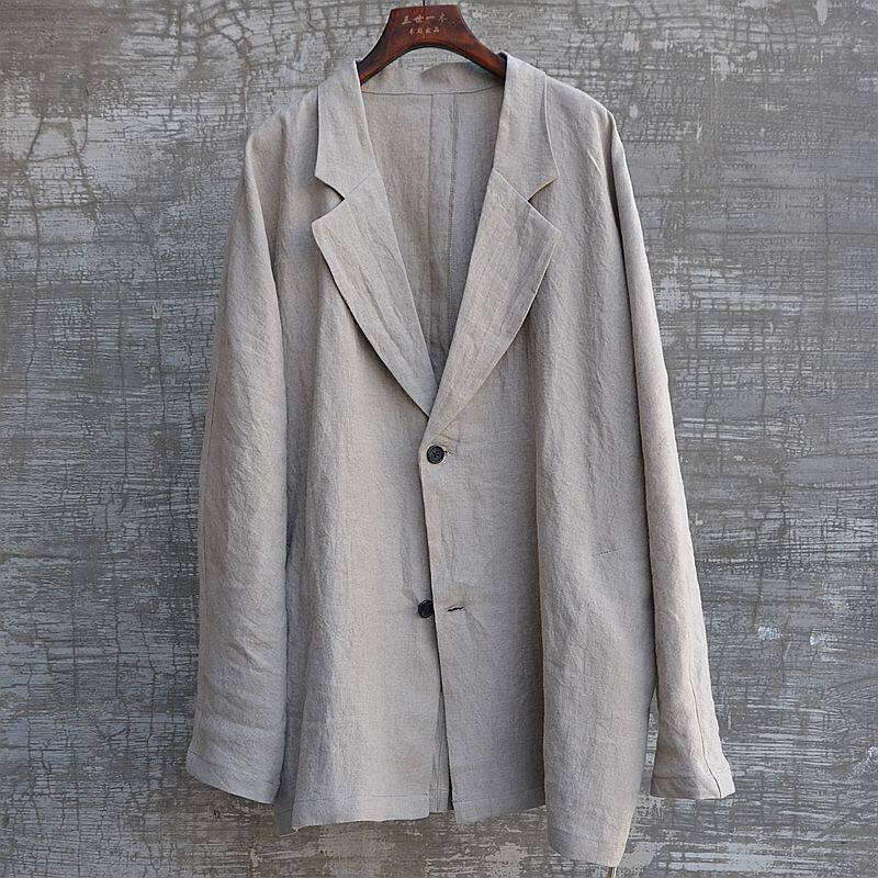 淘宝男装原创中性款帅气无染色进口双雨露亚麻休闲西装外套西服宽松