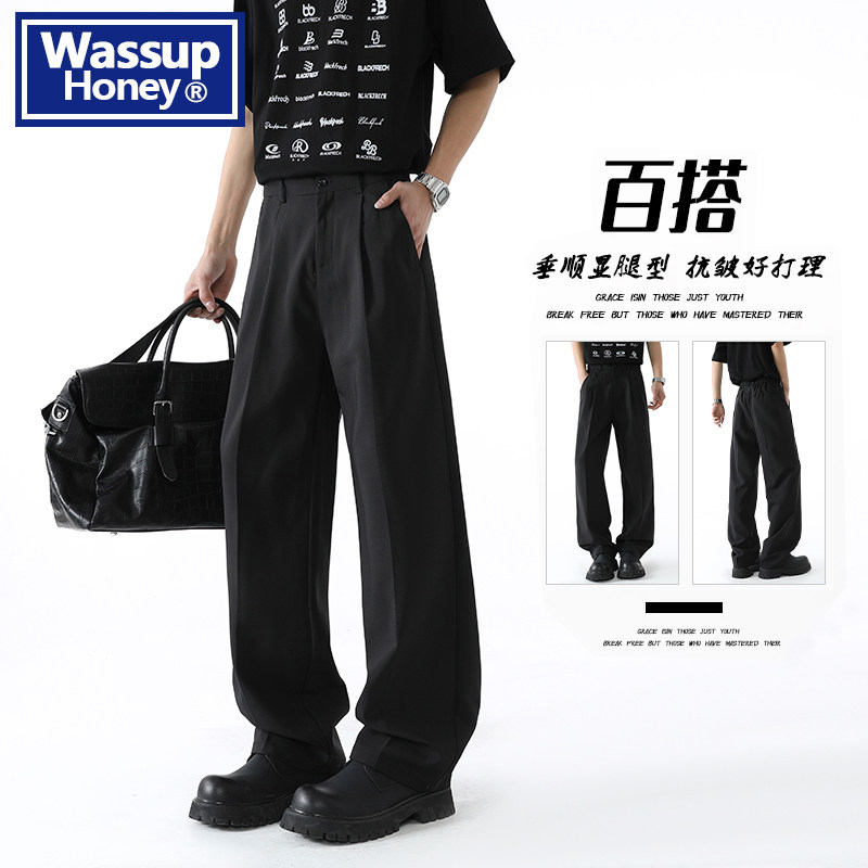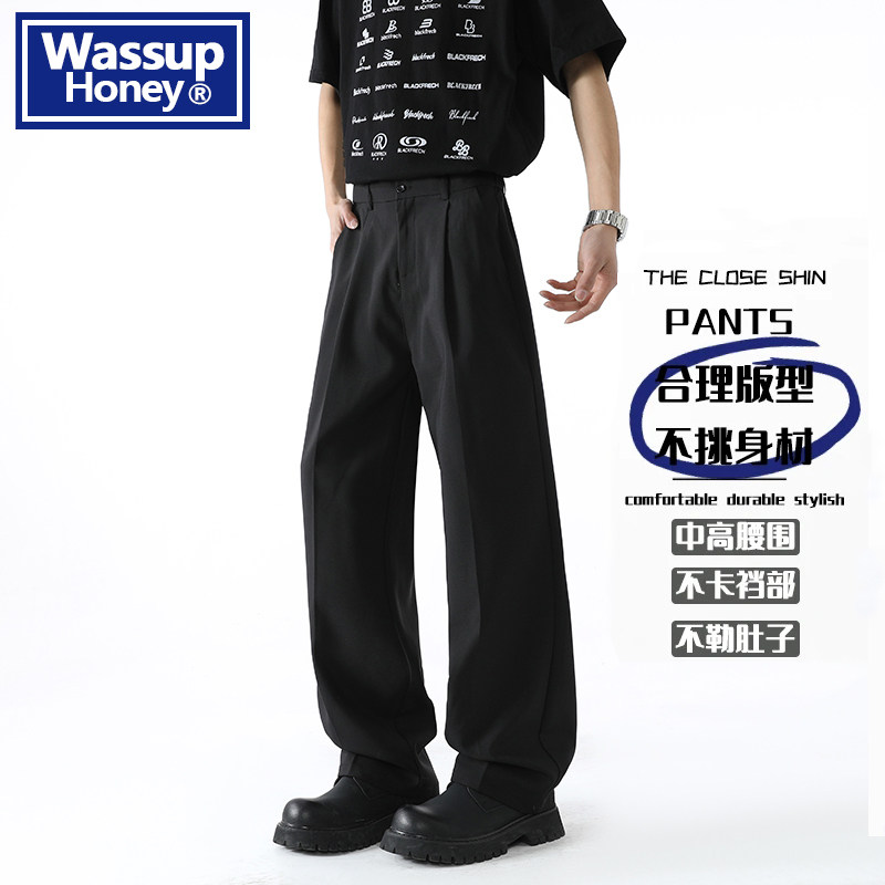 WASSUP Honey美式高街宽松西裤男款垂坠高级感长裤男士直筒休闲裤