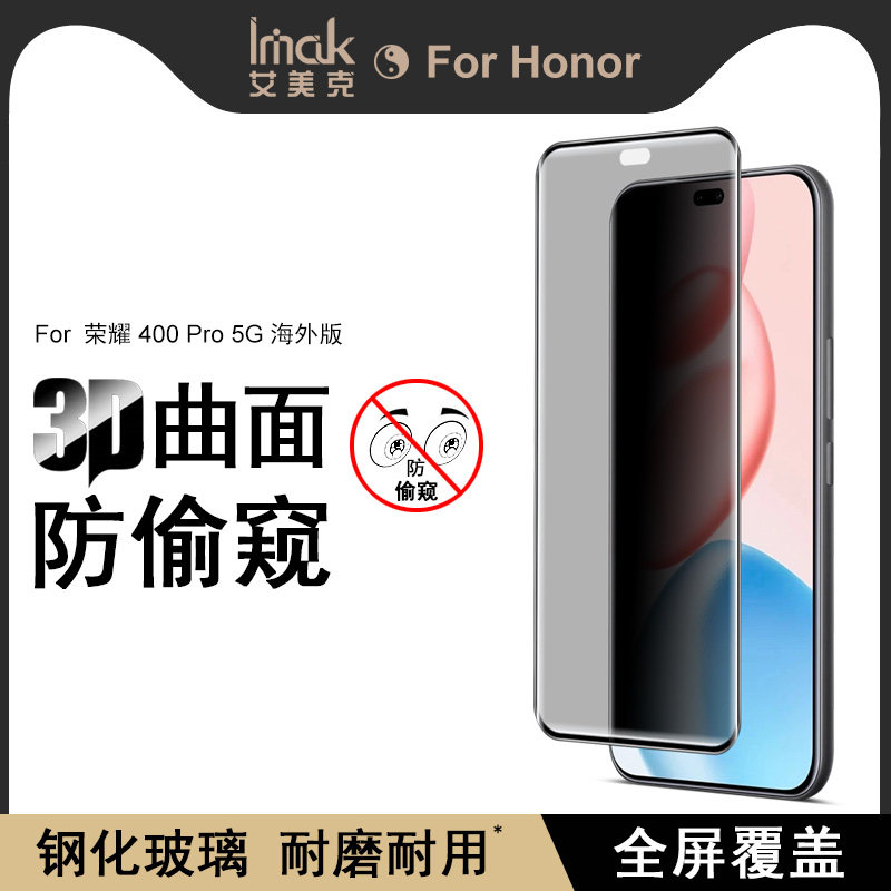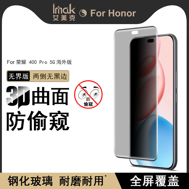 IMAK荣耀400 Pro 5G海外版 3D曲面玻璃膜全屏版Honor 400 3D国外版防偷窥钢化膜dnp-nx9无界版手机保护膜