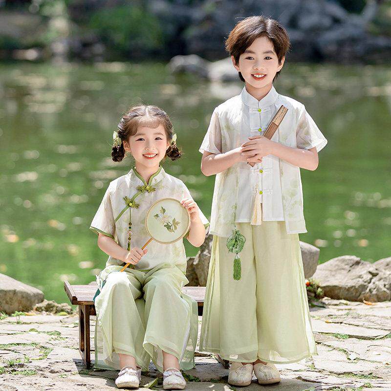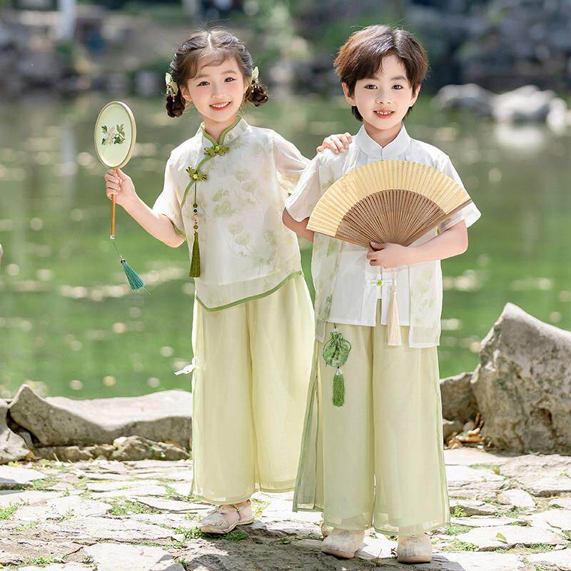 唐装男女宝宝新中式古装国风汉服幼儿园园服开 笔礼六一舞台表演