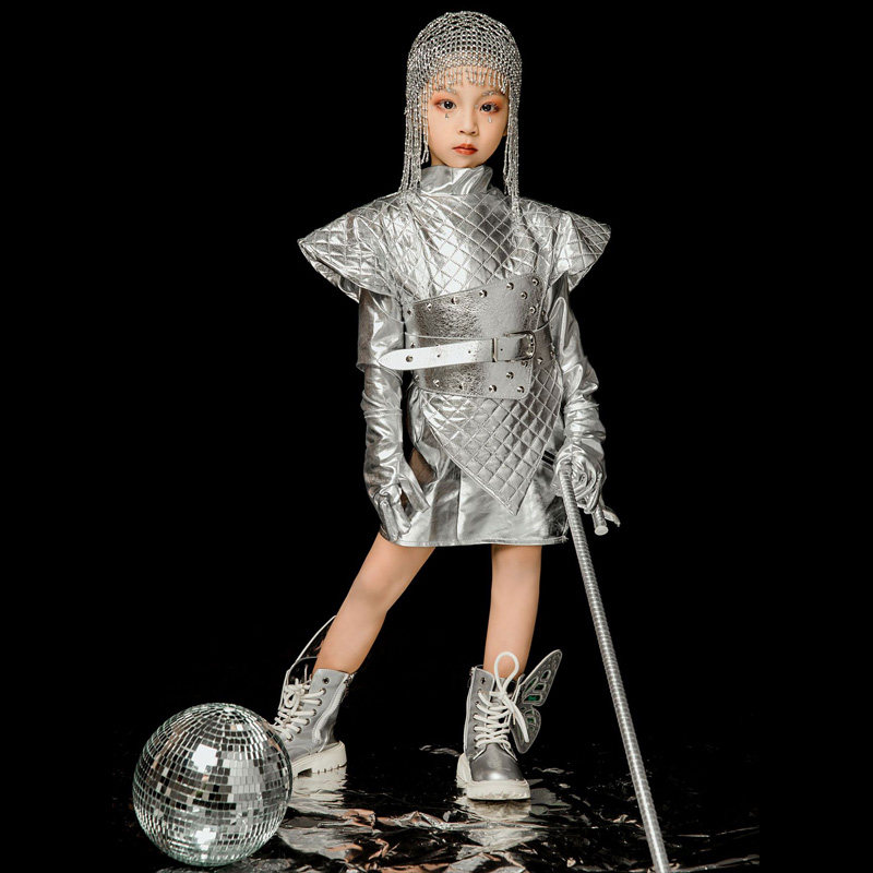 --------------------- 银色儿童走秀潮服未来科技风模卡演出服元宇宙创意主题舞台服装 【原售价】188元 【现售价】165元 【推荐理由】