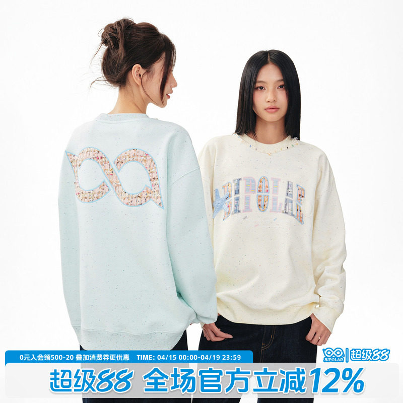BIPOLAR贝壳织带小香风贴布圆领卫衣国潮秋冬季基础百搭情侣新款