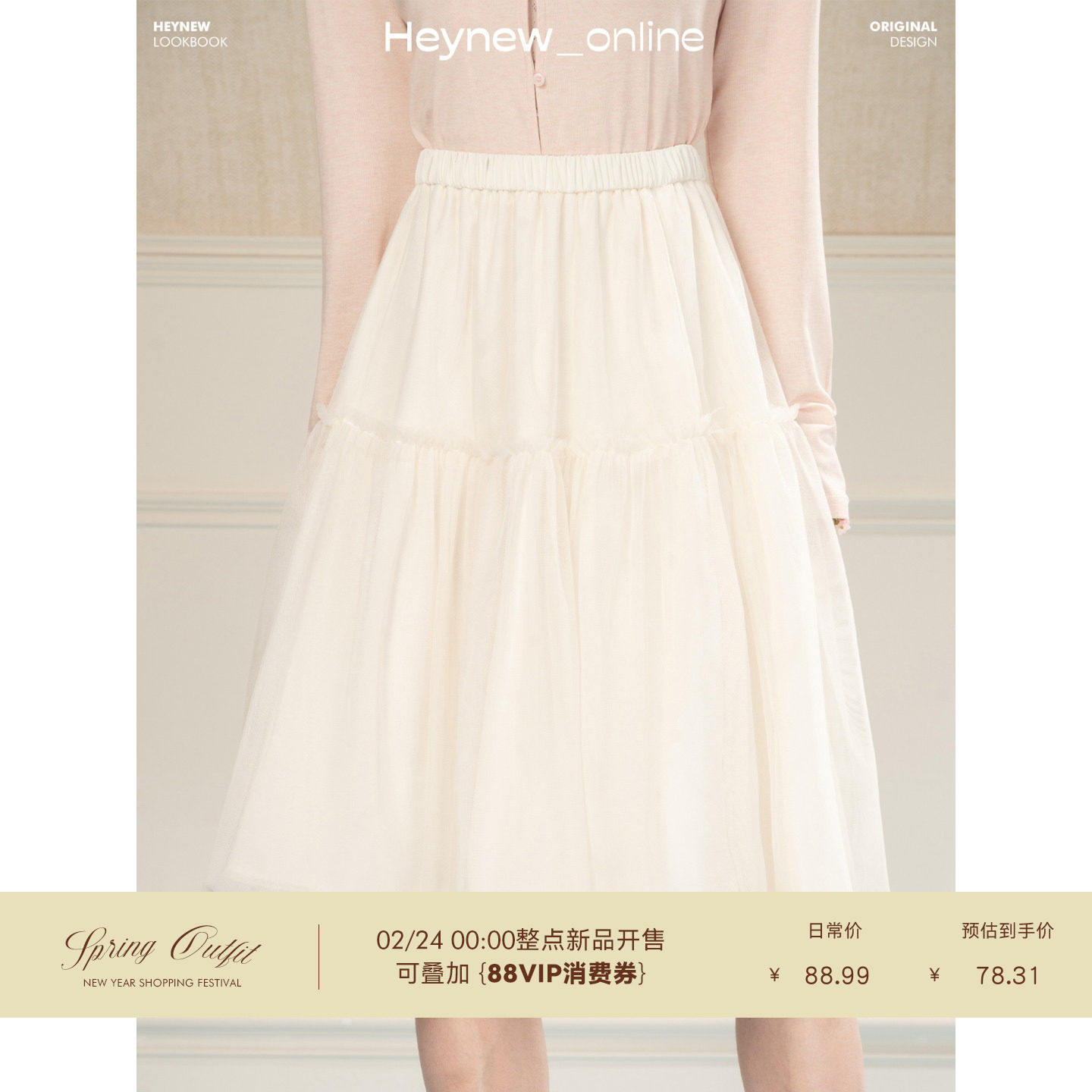 --------------------- HEYNEW甜美公主风蓬蓬半身裙女春季新款高腰显瘦减龄巨好看网纱裙 【原售价】90.64元 【现售价】90.64元 【推荐理由】