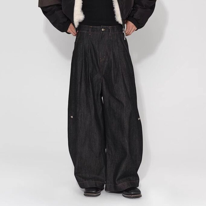 NIIPLICITY 24FW 日产大廓形打褶阔腿原牛牛仔长裤