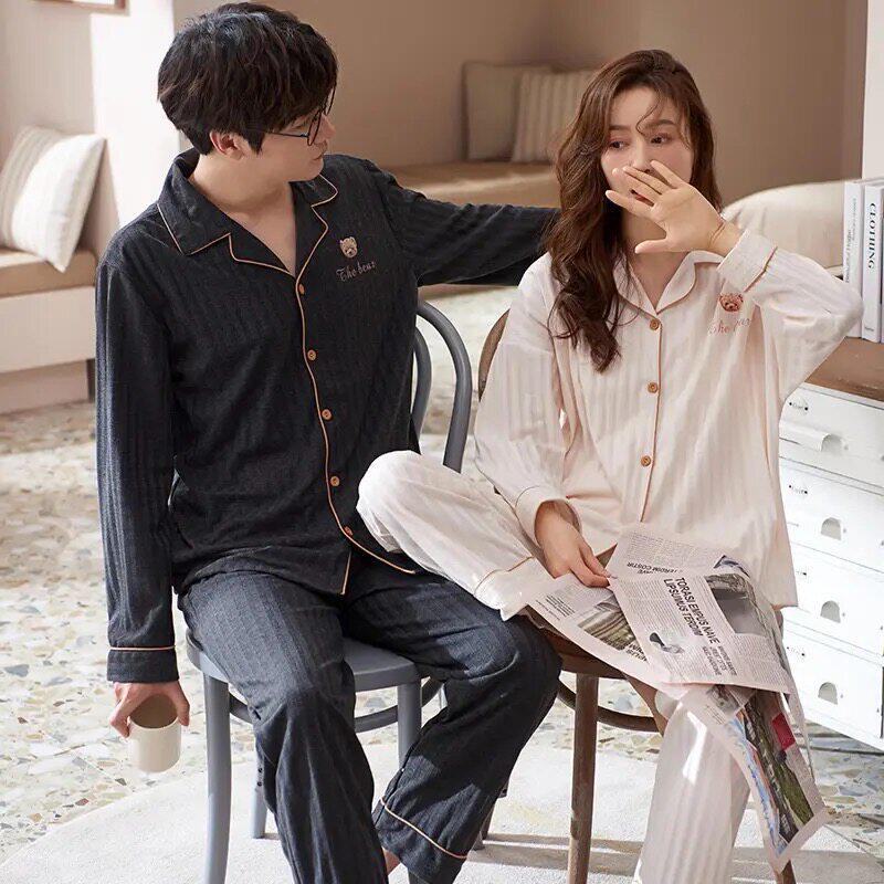 淘宝HT 男女款套装情侣睡衣二件套春季长袖2026新款薄款宽松舒适