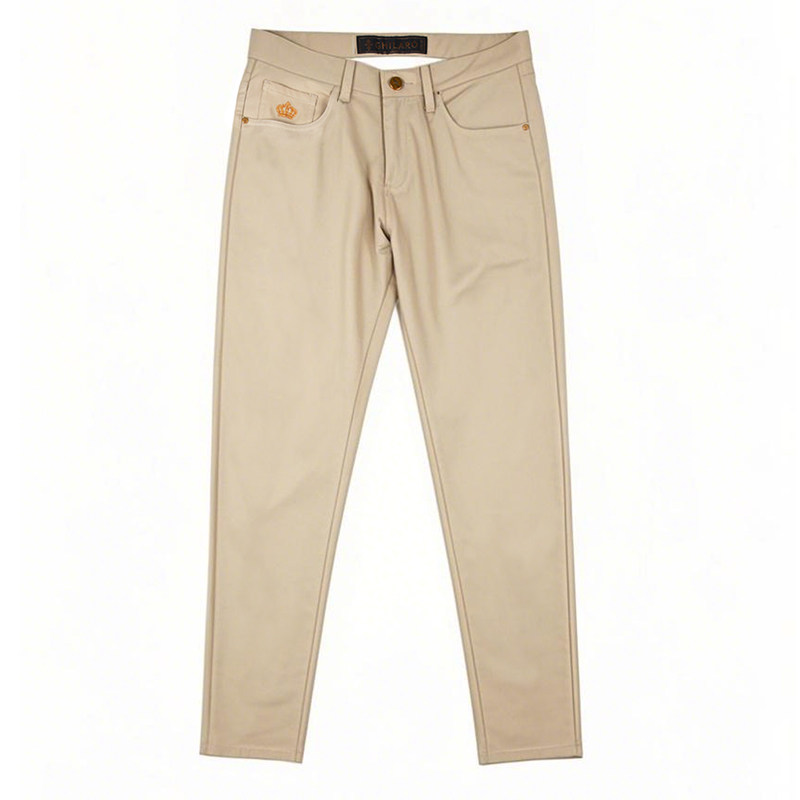 雷迪波尔旗下品牌古劳吉那诺2025夏季新款刺绣中腰纯色微弹休闲裤