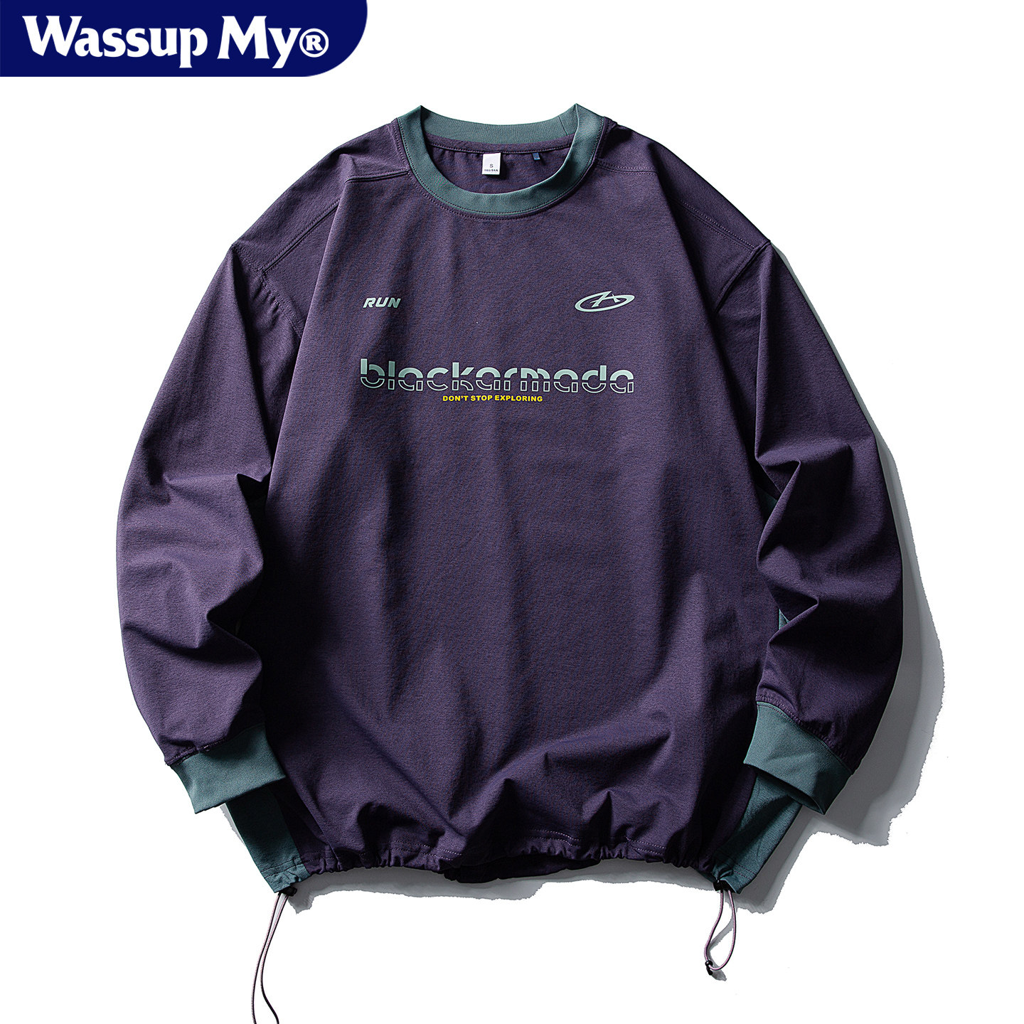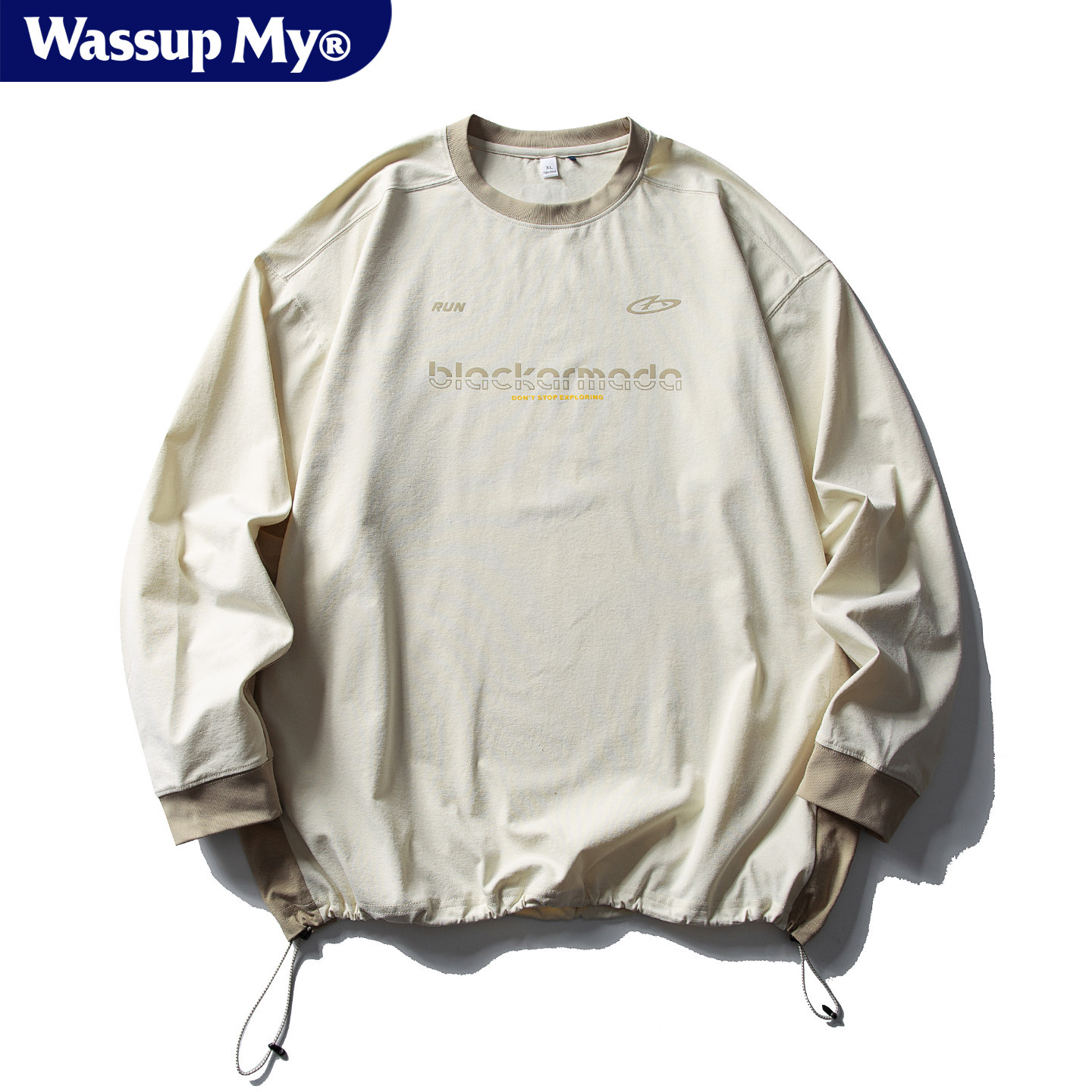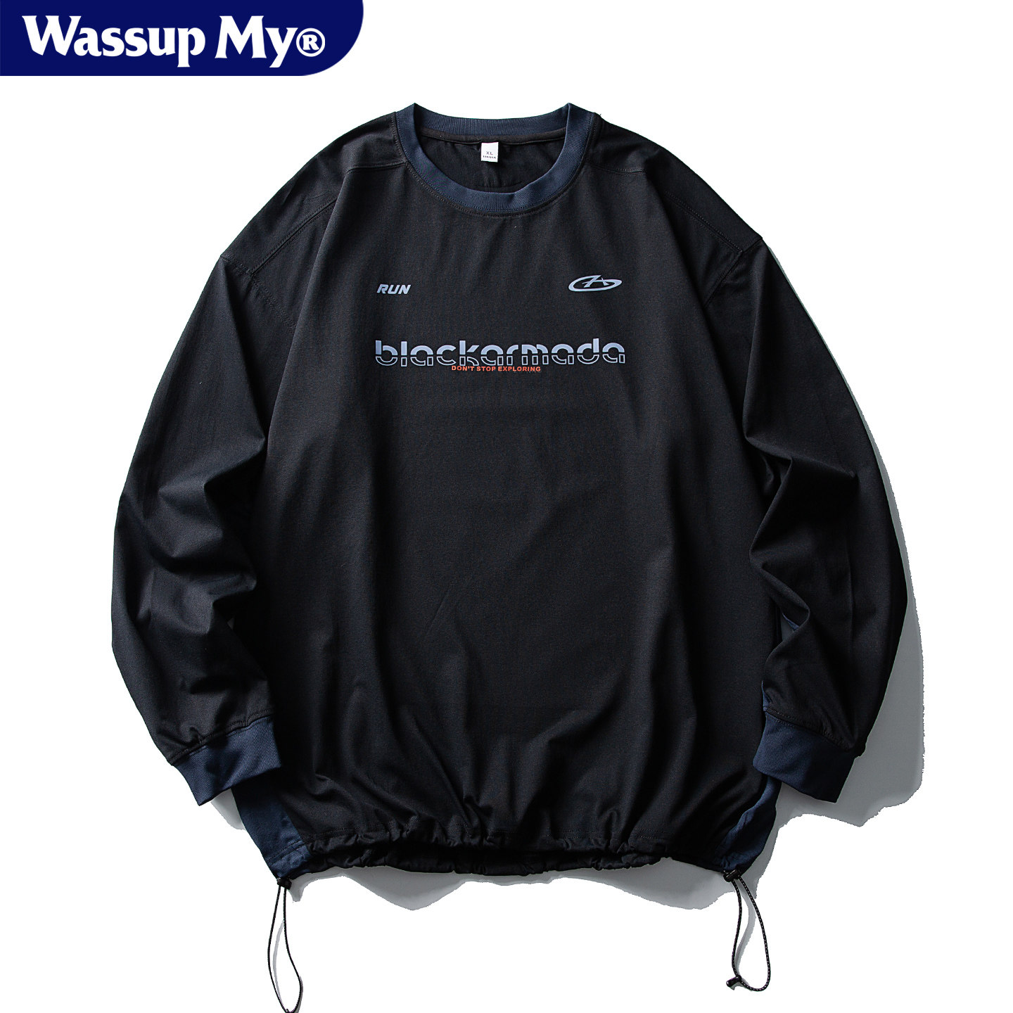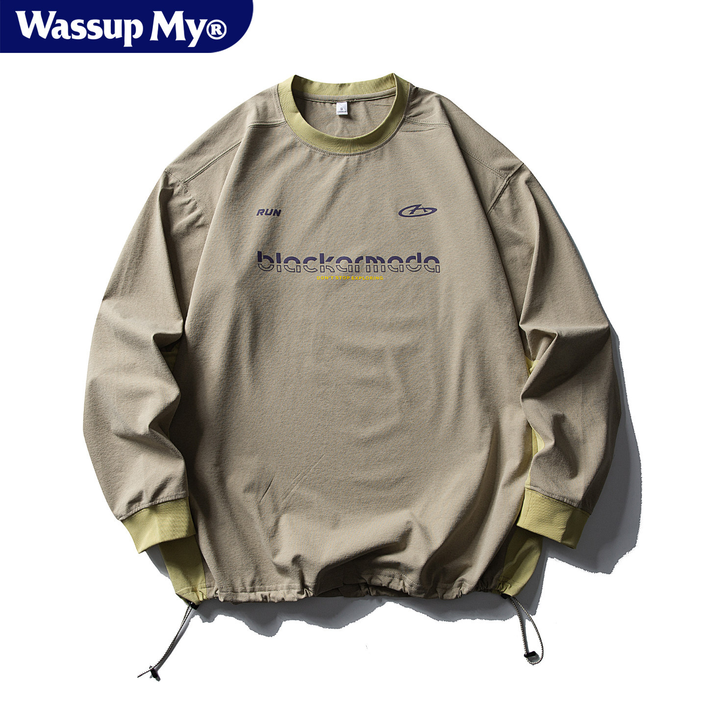 Wassup My美式休闲运动长袖T恤男女宽松户外吸湿速干圆领打底衫潮