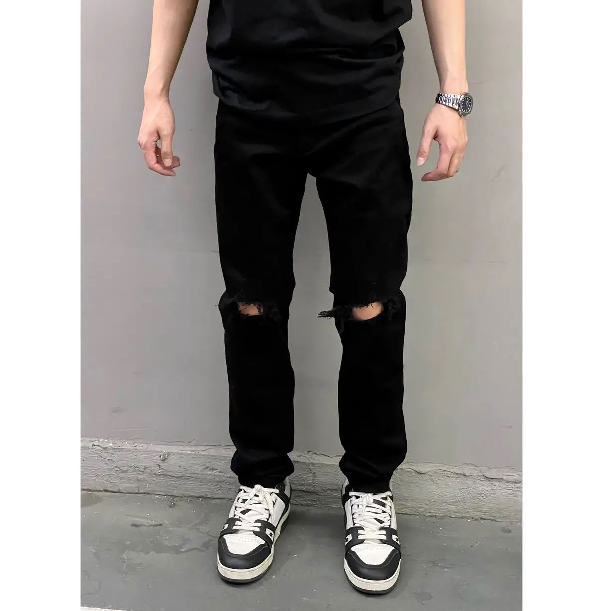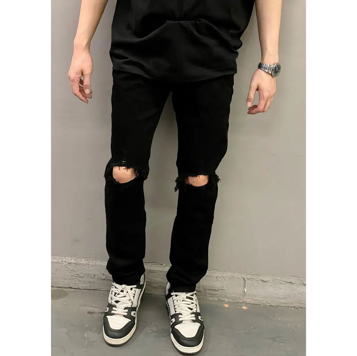 高街破洞牛仔裤男防掉色春夏季新款时尚潮流弹力黑色牛仔休闲长裤