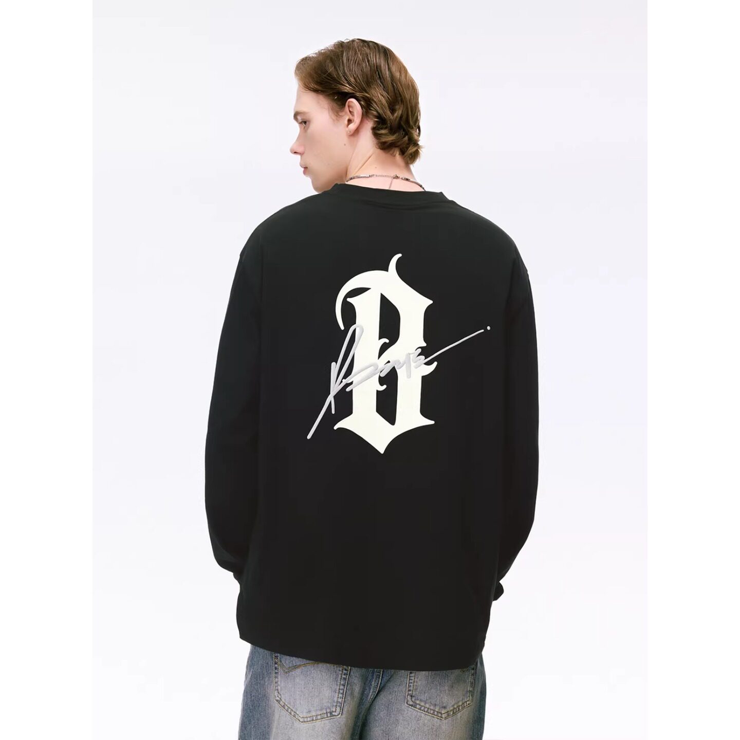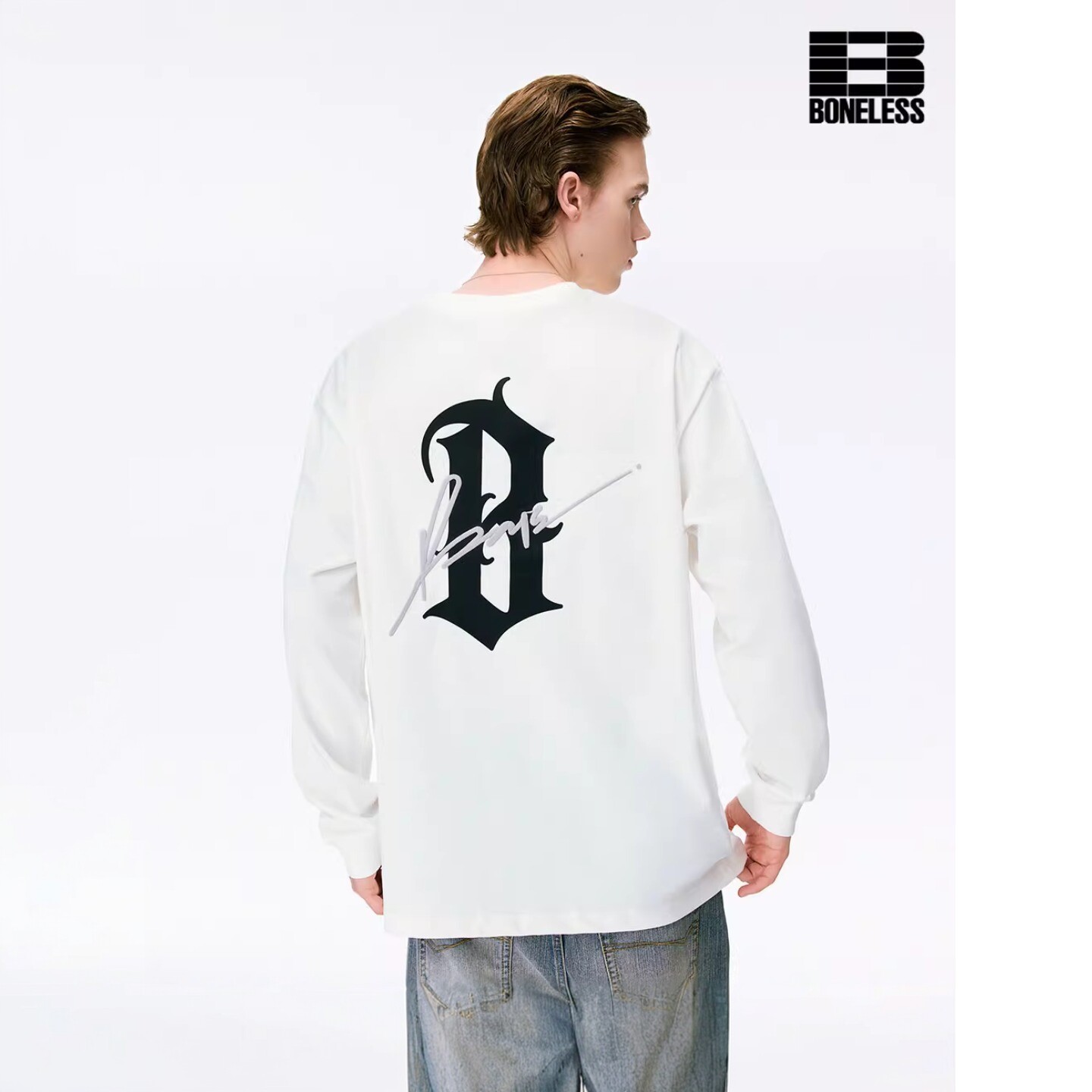 【蔡徐坤同款】BONELESS新哥特B印花刺绣长袖T恤纯棉宽松休闲上衣