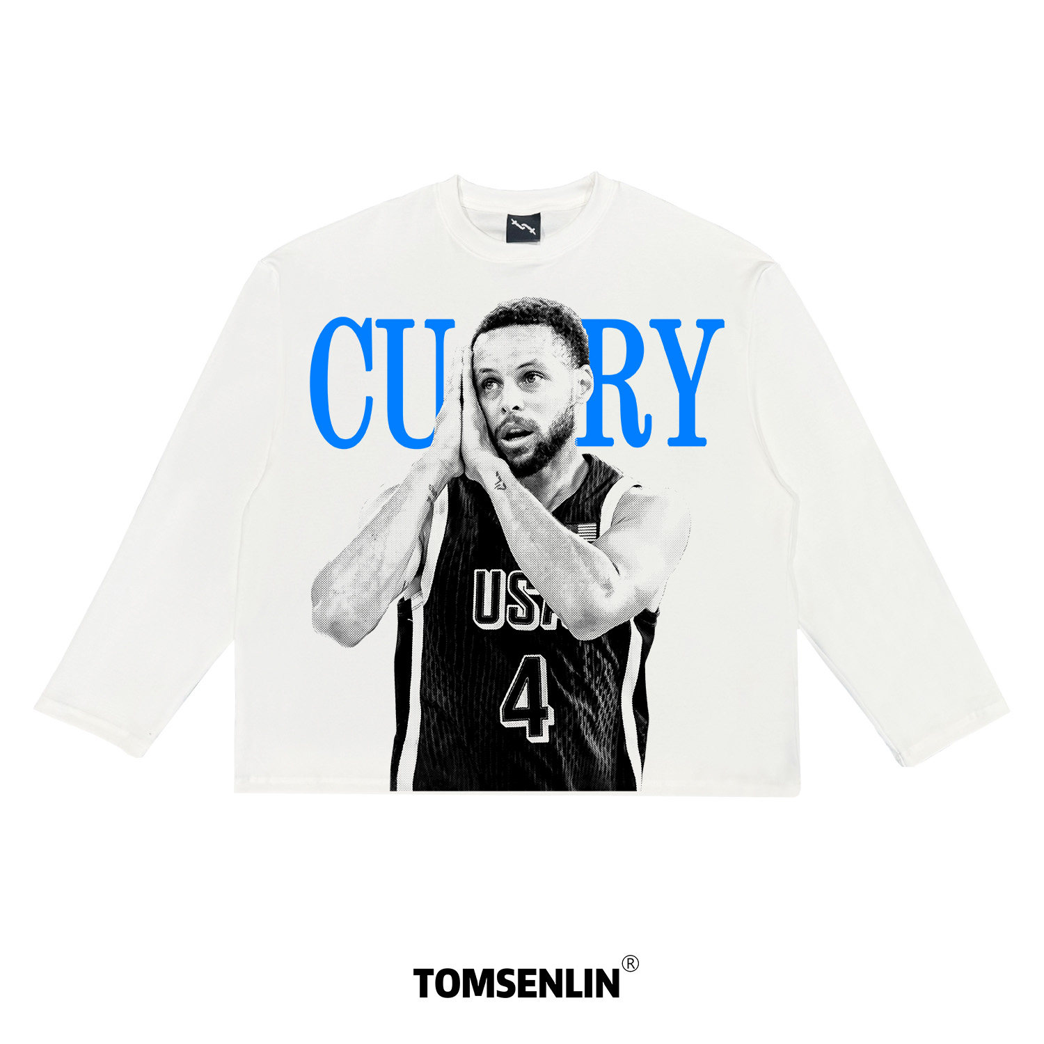 tomsenlin-库里 美式街头人物撞色复古康丽印花长短袖T恤
