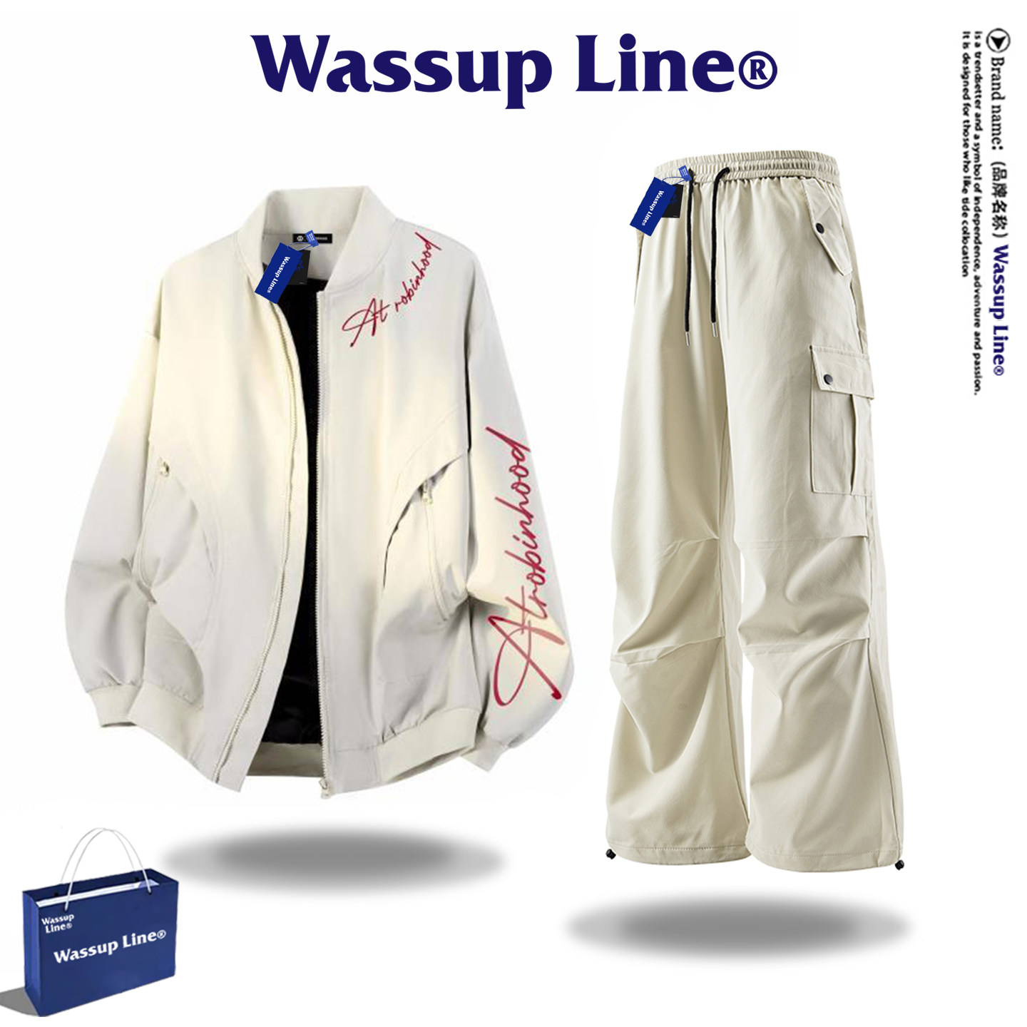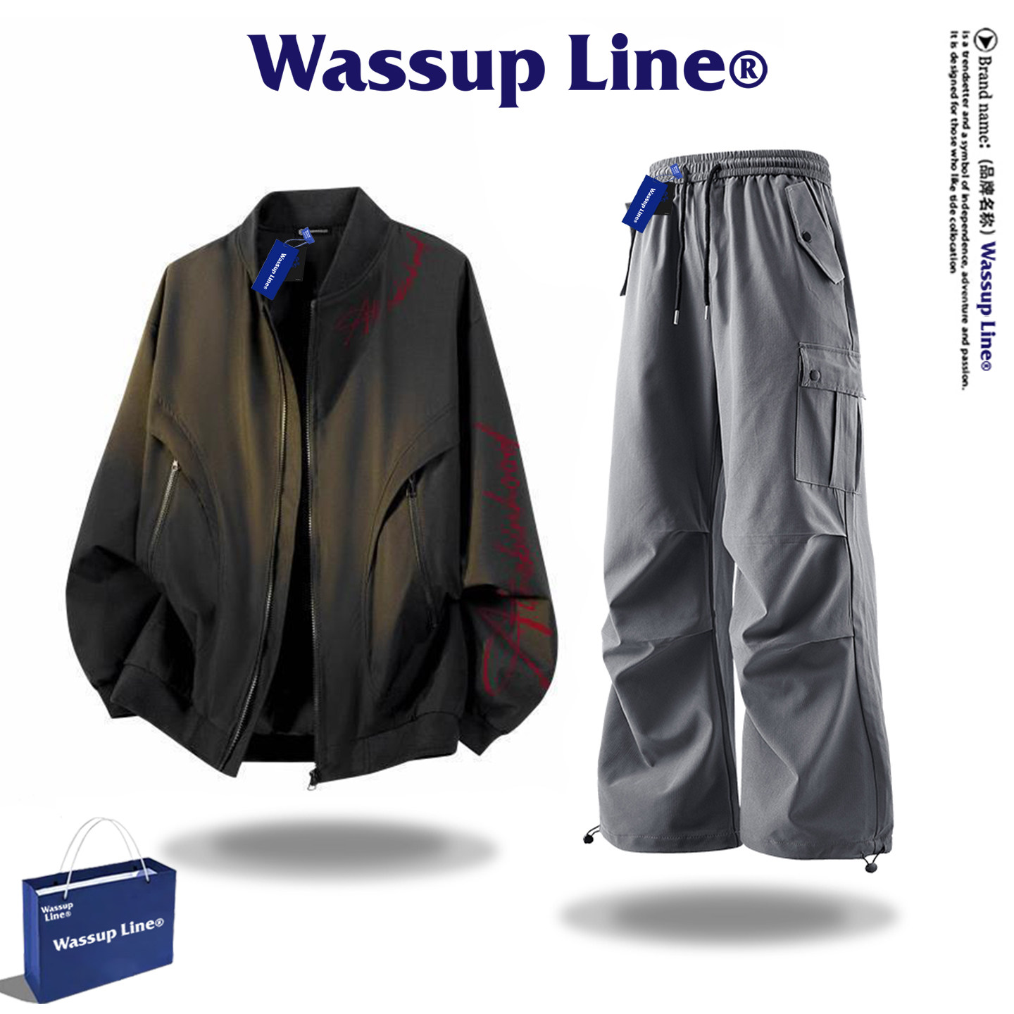 WASSUP Line潮牌美式休闲套装男款春秋季宽松百搭工装外套夹克男