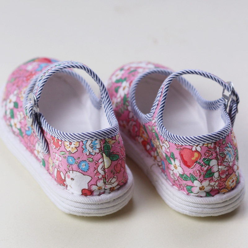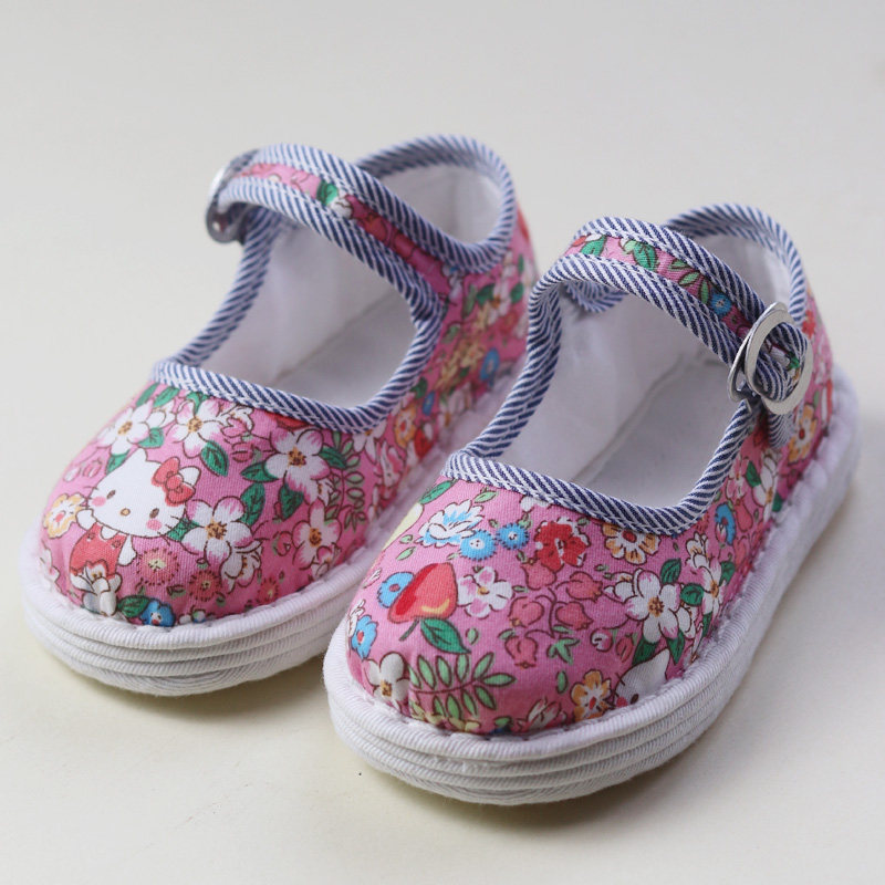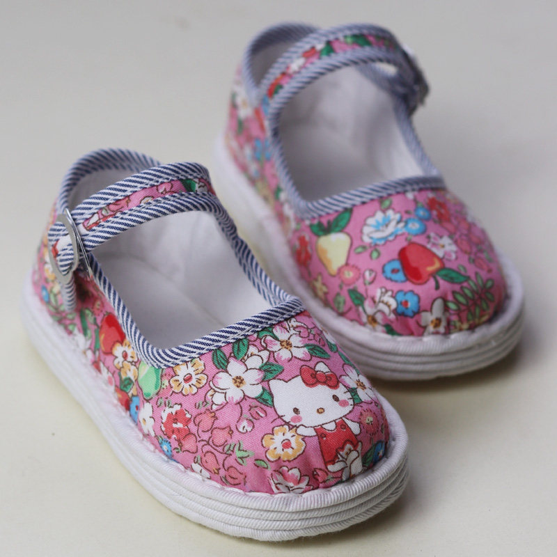 淘宝手纳千层底儿童布鞋 吸汗透气 粉色卡通浅口 手工纳底 女宝学步鞋