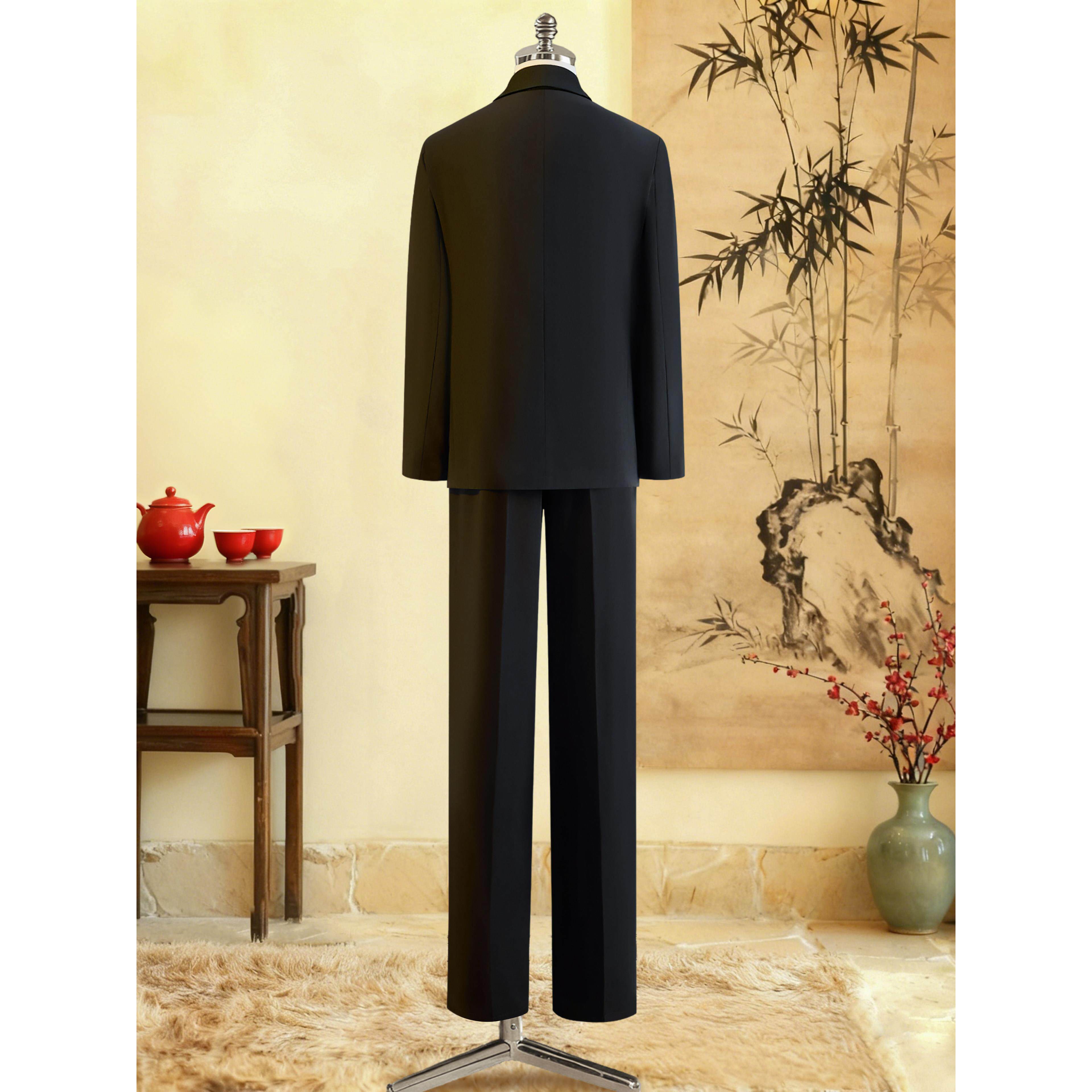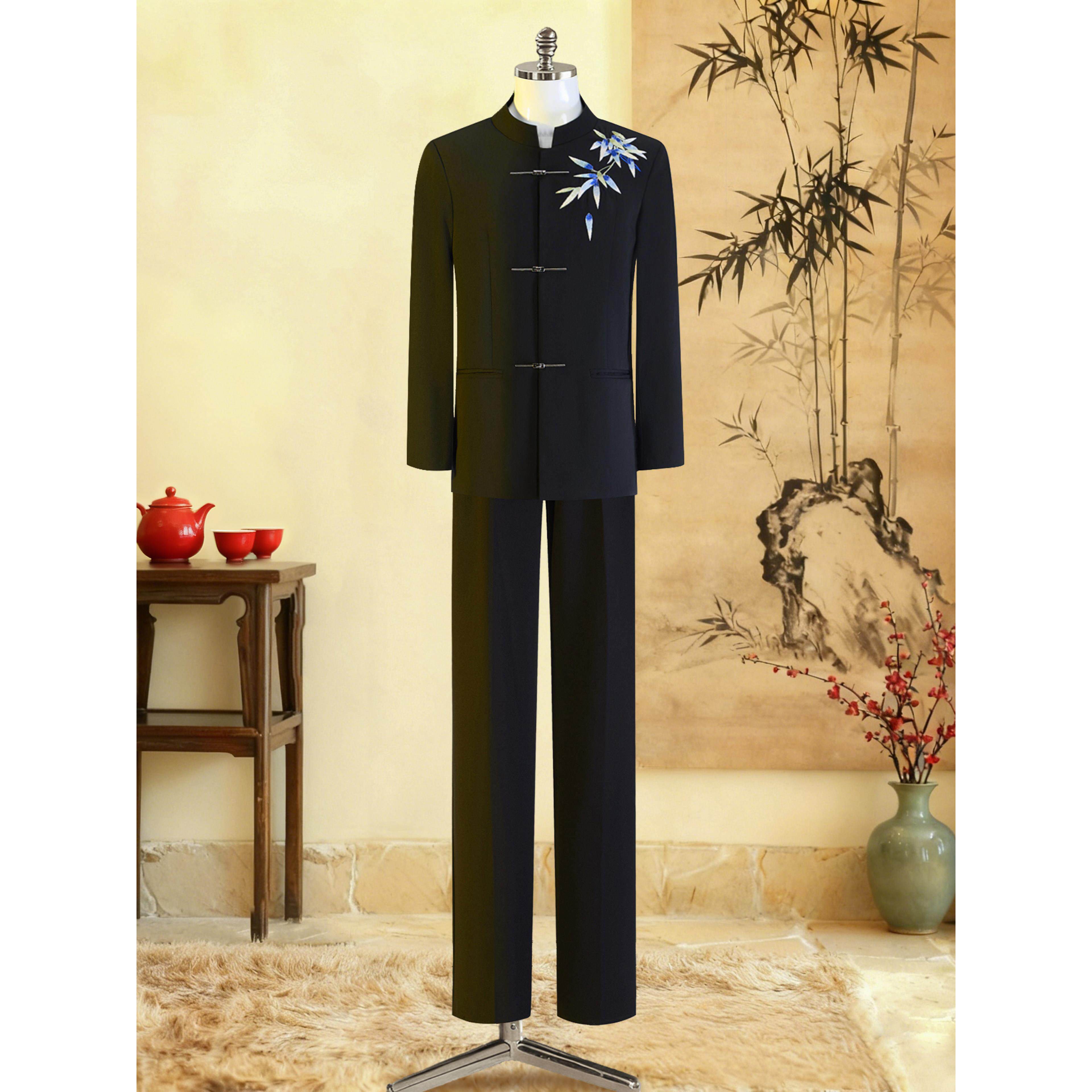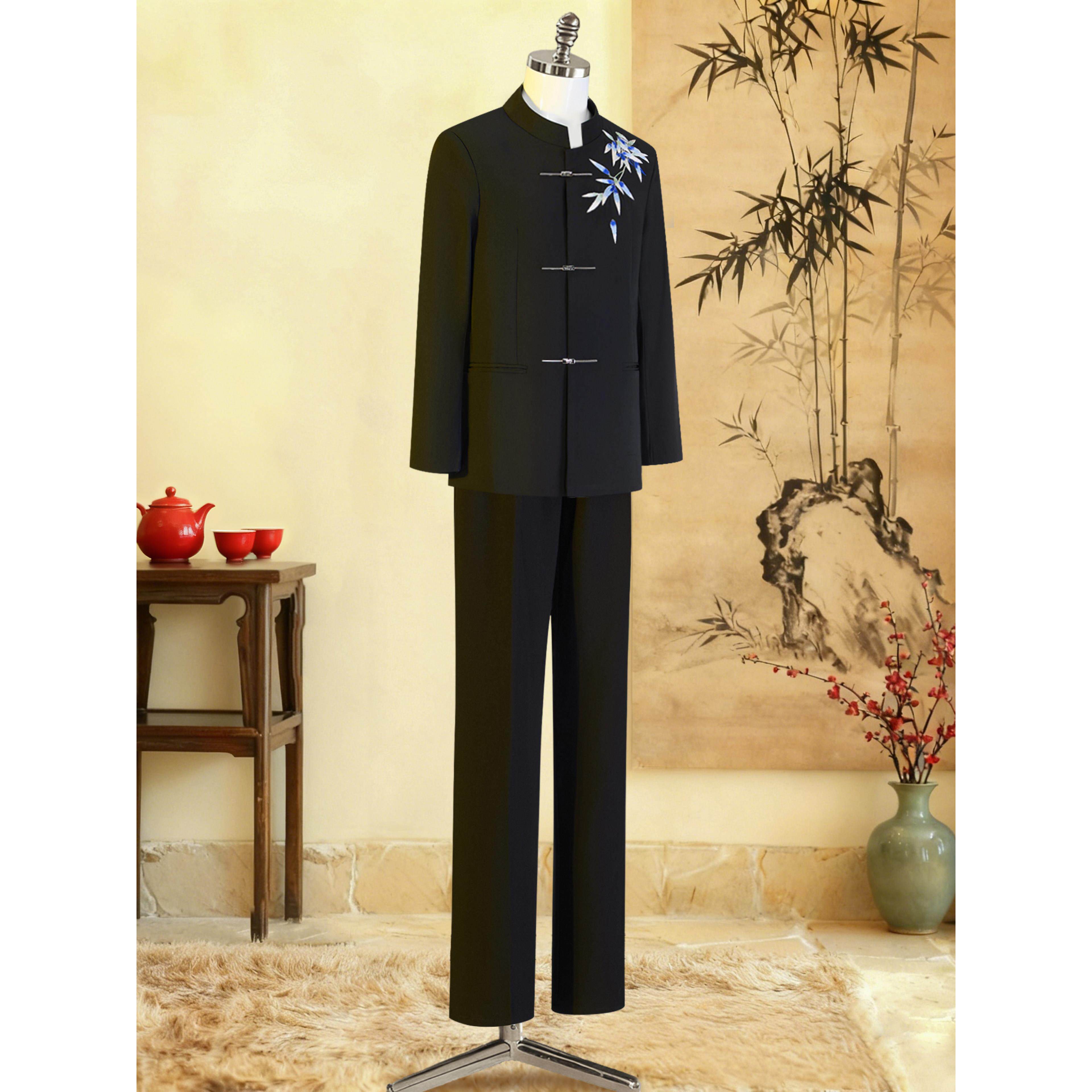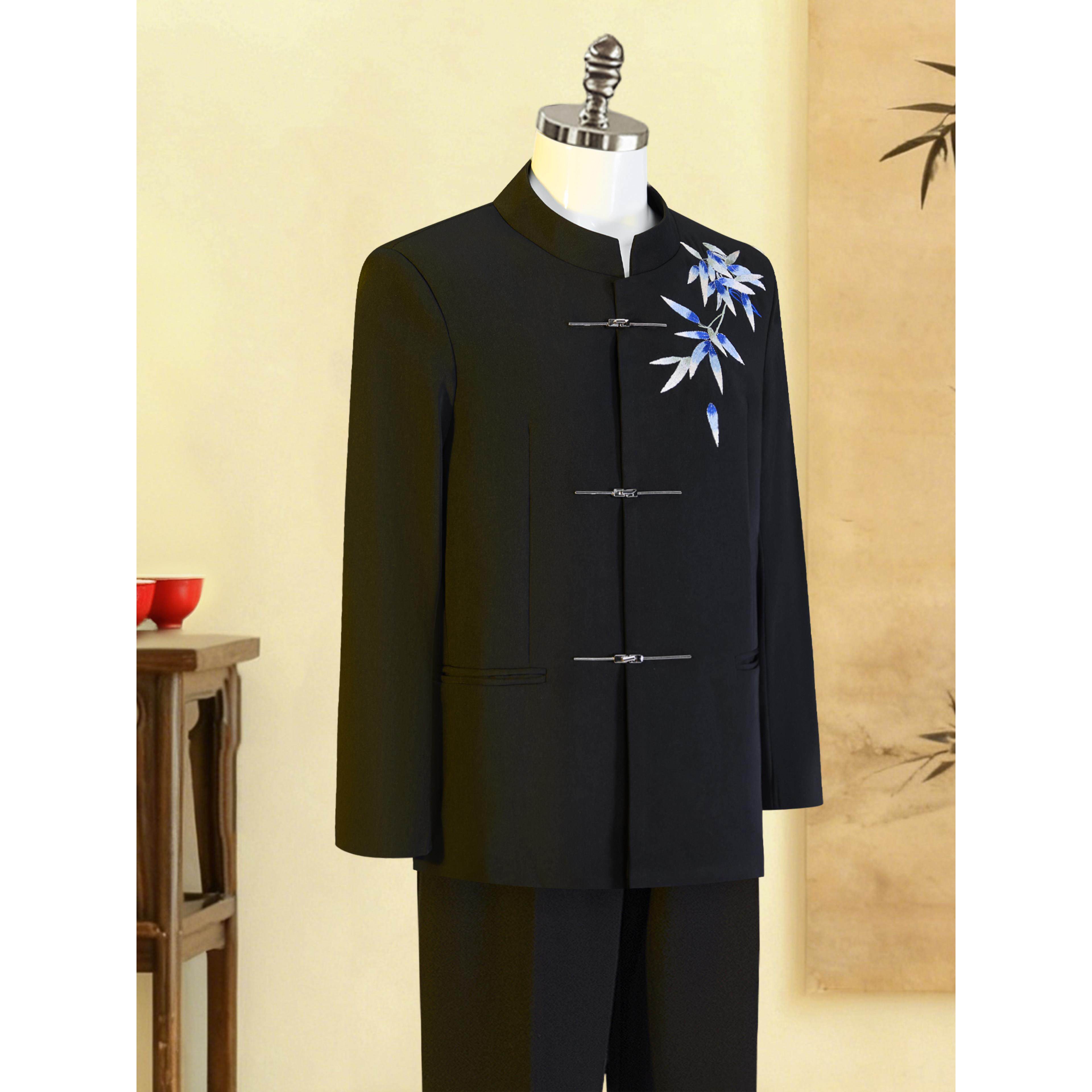 中山装男婚礼订婚男装竹叶新中式衣服新郎男士秀禾服立领国潮西服