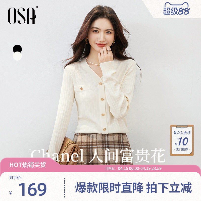 --------------------- 【可可针织衫】OSA欧莎经典小香风V领小衫女春季新款百搭长袖上衣 【原售价】259元 【现售价】169元 【推荐理由】