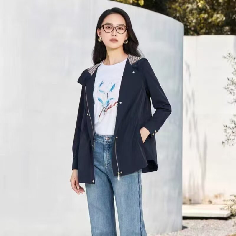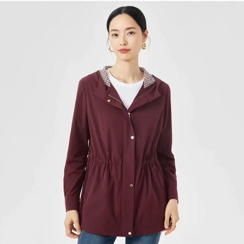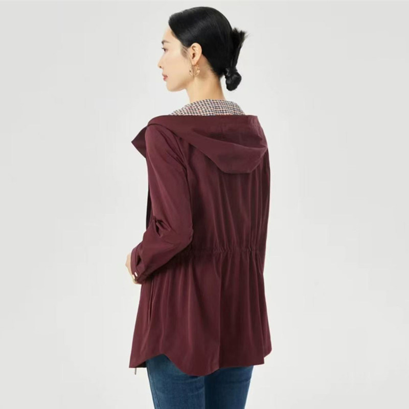 娜家商场同款女装2025秋季新款时尚连帽抽绳收腰显瘦风衣短外套女