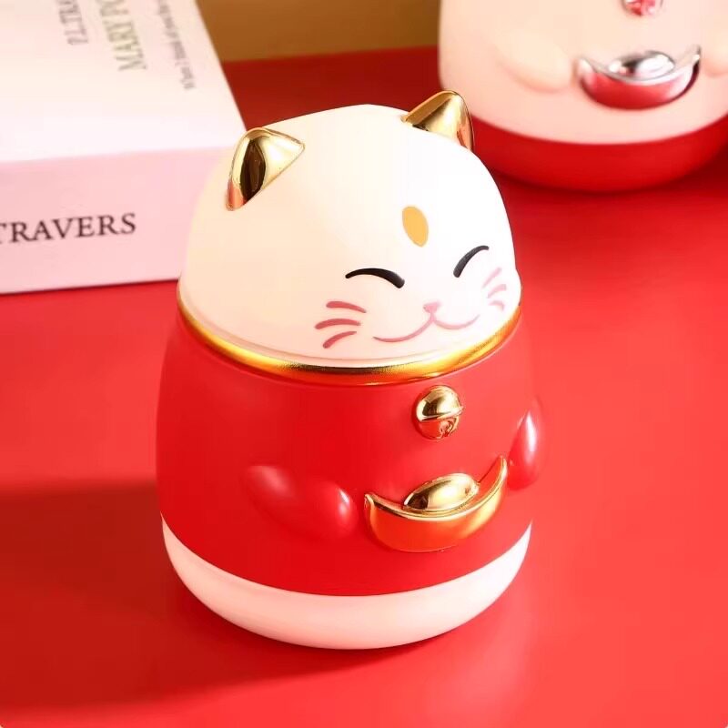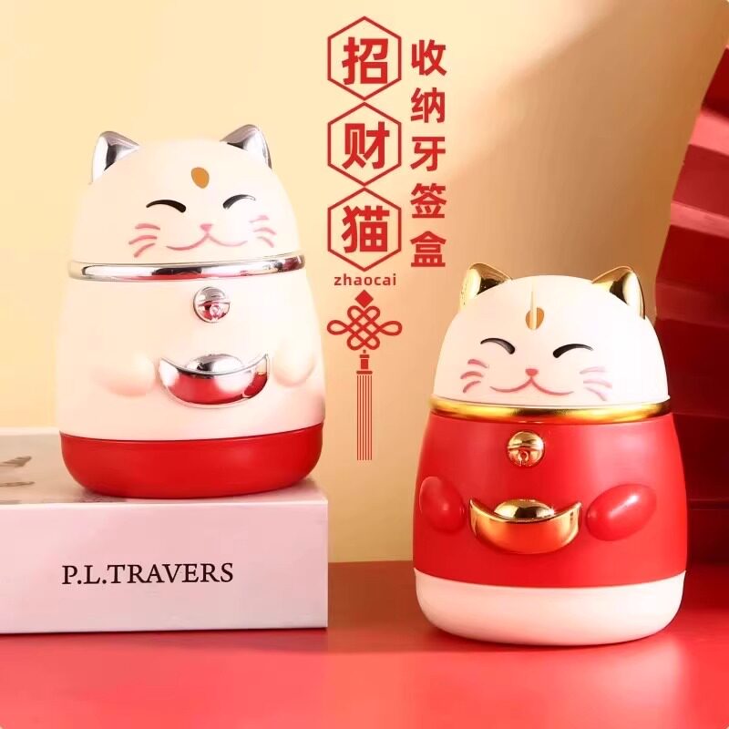 牙签盒高颜值国潮卡通创意按压式自动弹出招财猫牙签罐家用牙签筒