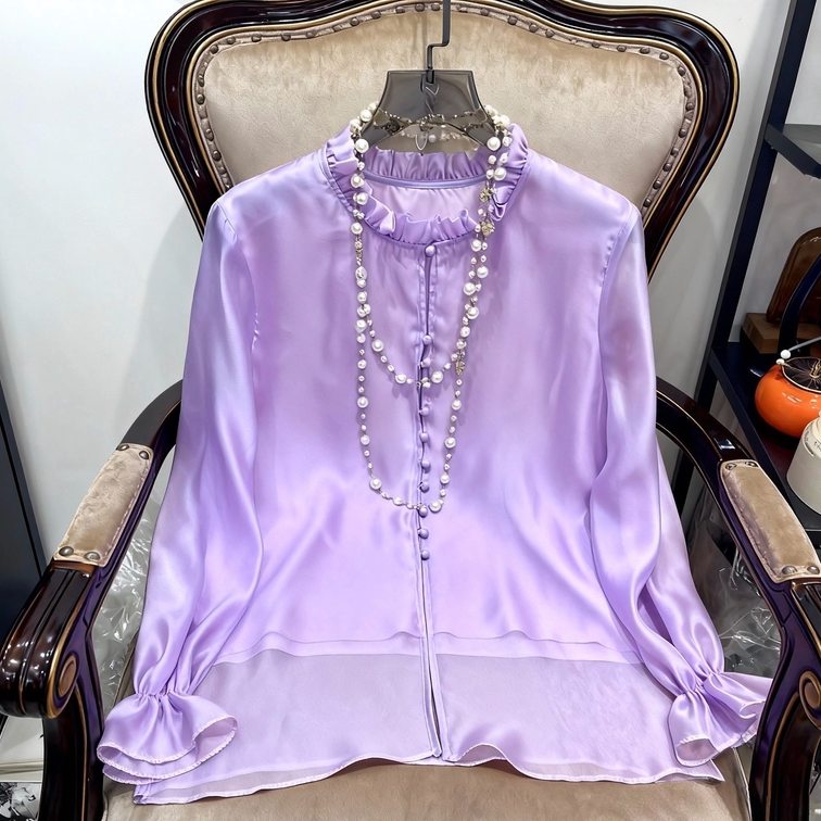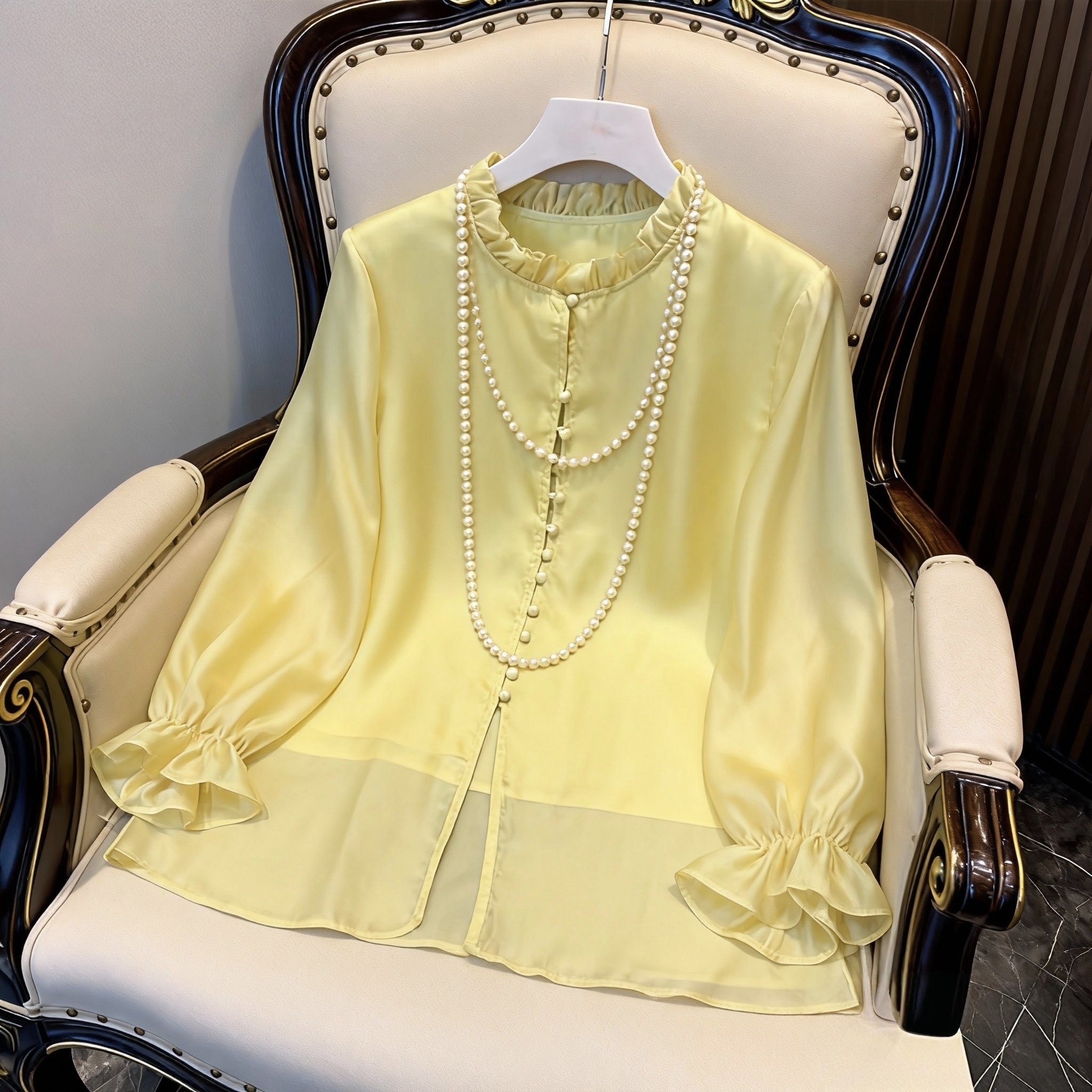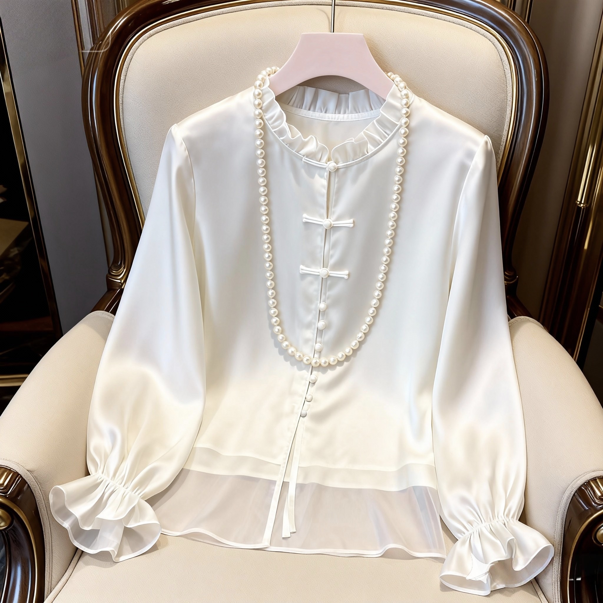 淘宝时尚新中式百搭款打底衬衫女2026新款优雅气质木耳边国风天丝上衣