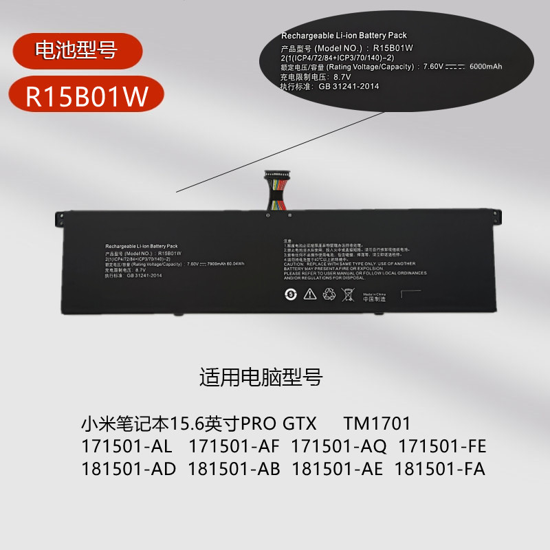适用于小米笔记本PRO 15.6 TM1701 171501-AL AQ 电池 R15B01W