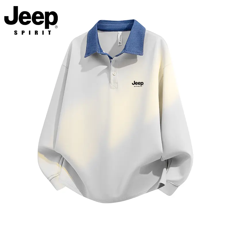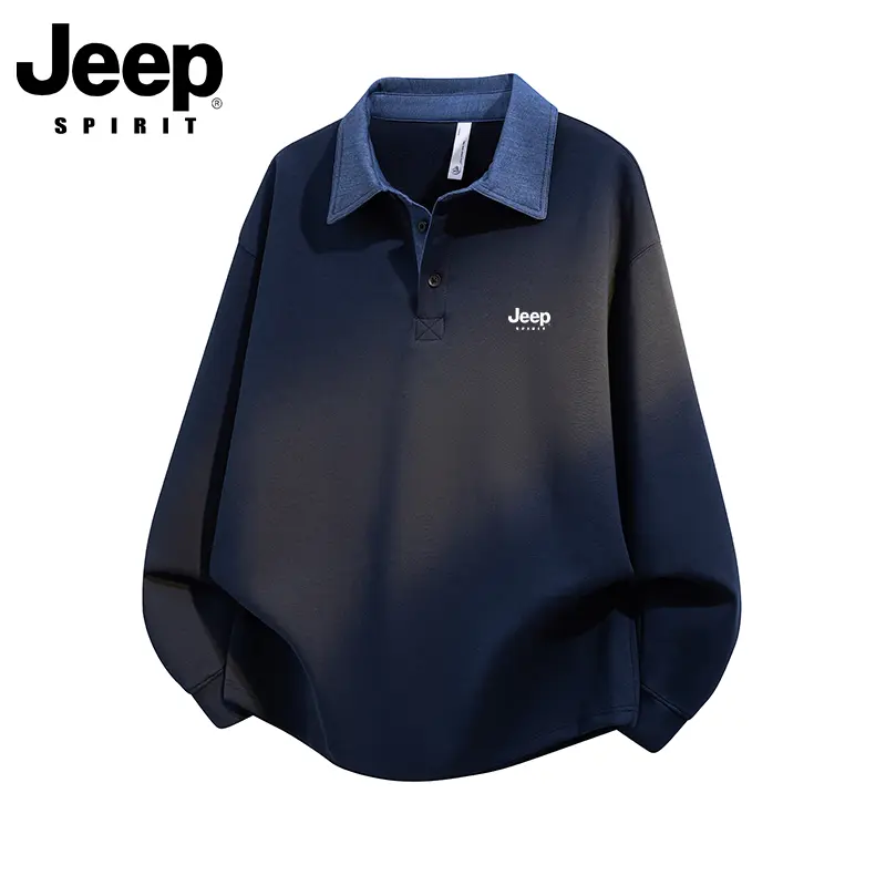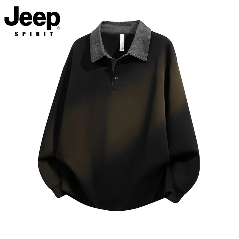 淘宝jeepspirit翻领polo衫卫衣男春秋季宽松大码新款潮流休闲纯色长袖