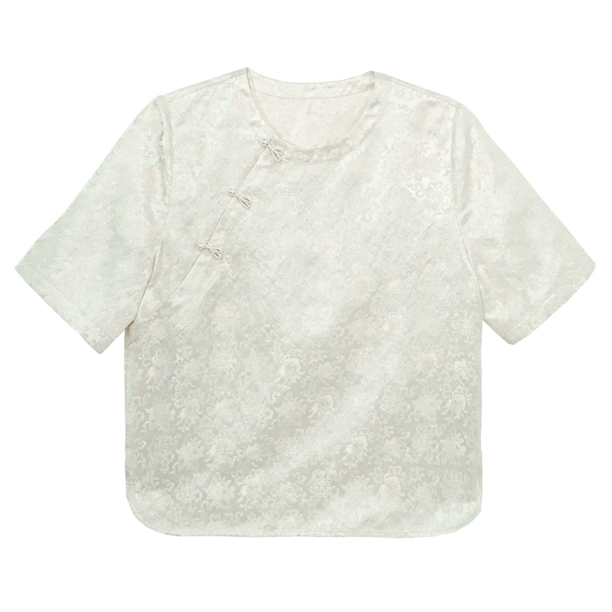 【白韵】桑蚕丝夏季新中式短袖圆领上衣休闲文艺斜襟小衫25164
