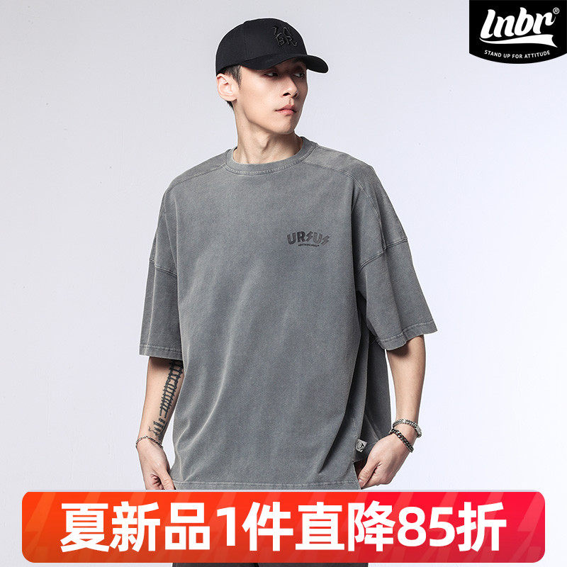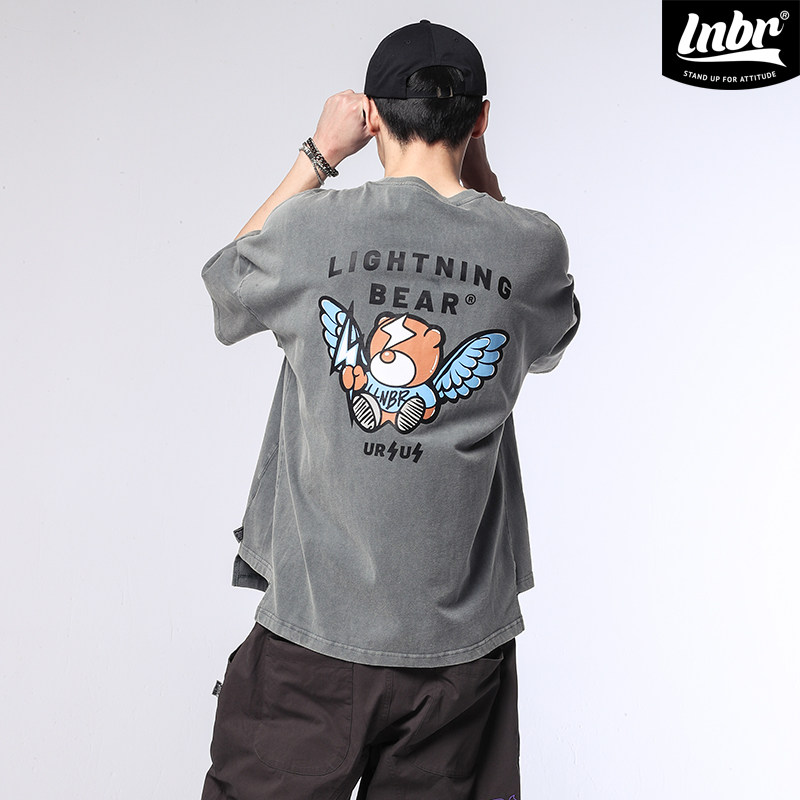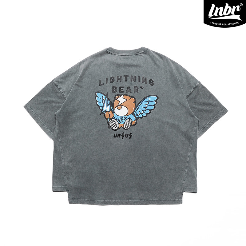 --------------------- LNBR原创25夏新品复古T恤男重水洗灰色不规则oversize闪电熊短袖 【原售价】228元 【现售价】170.6元 【推荐理由】