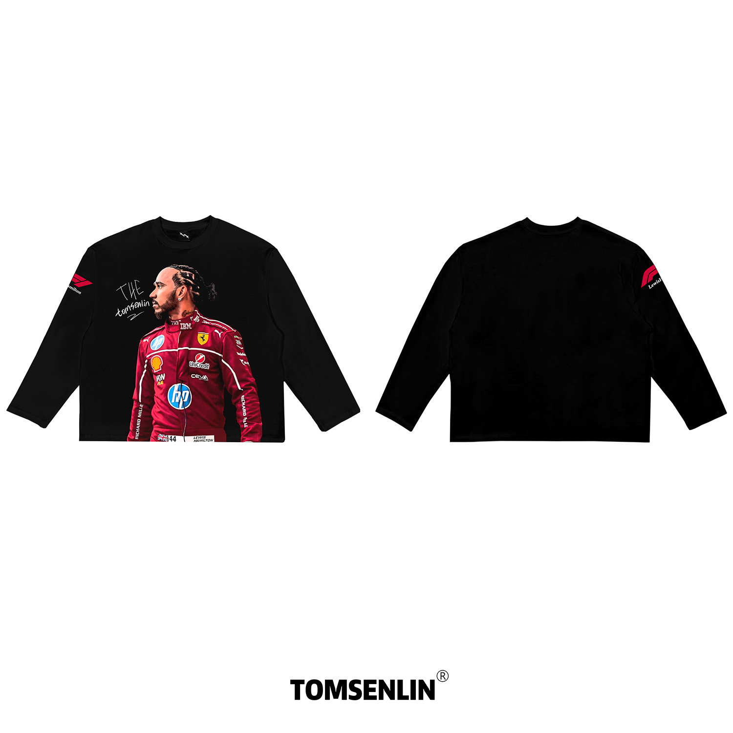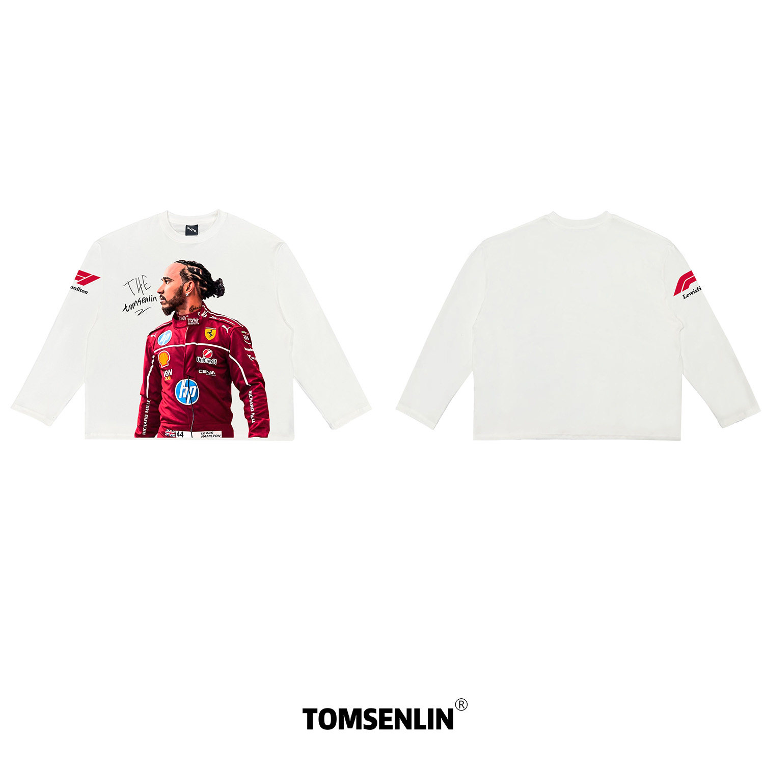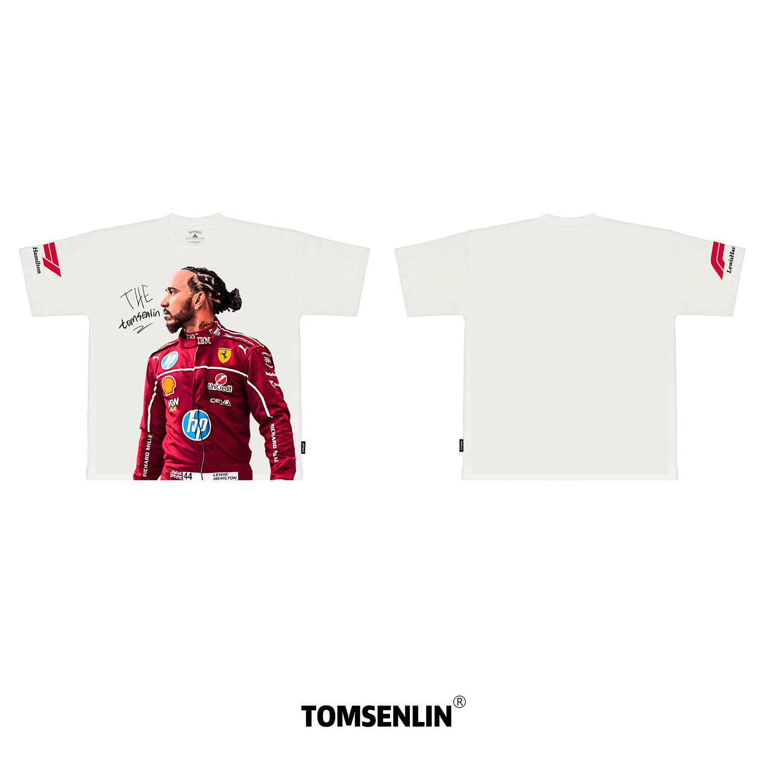 tomsenlin路易斯汉密尔顿F1赛车手康丽印花美式短袖