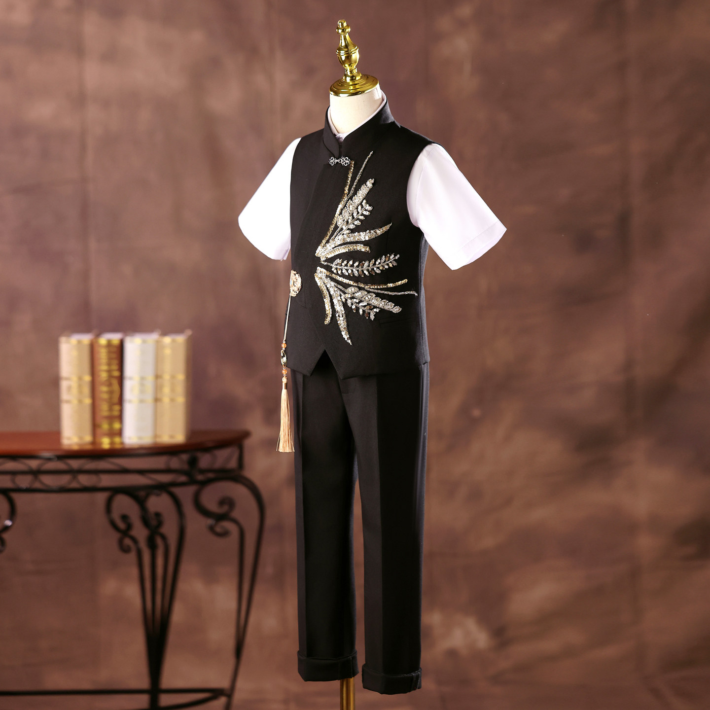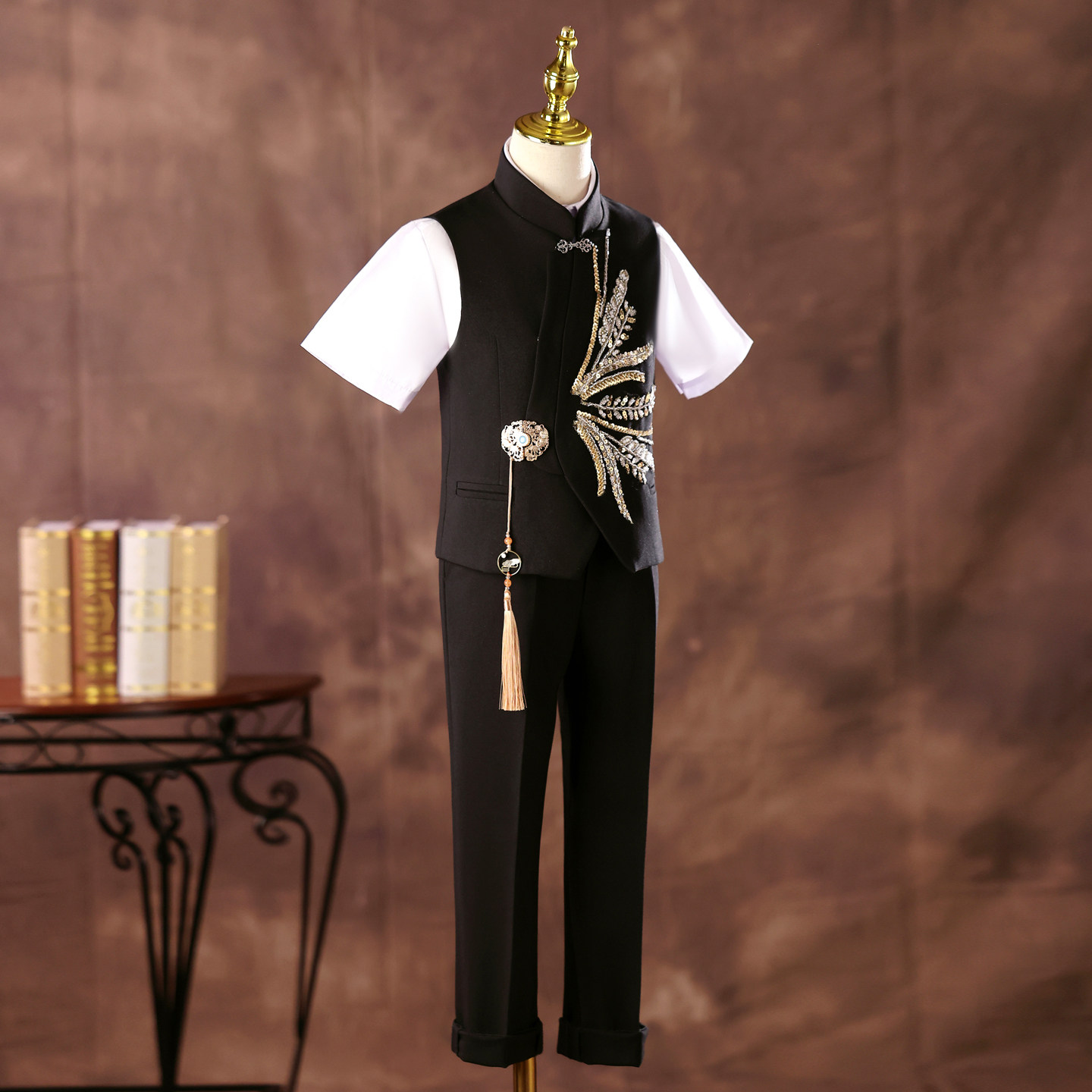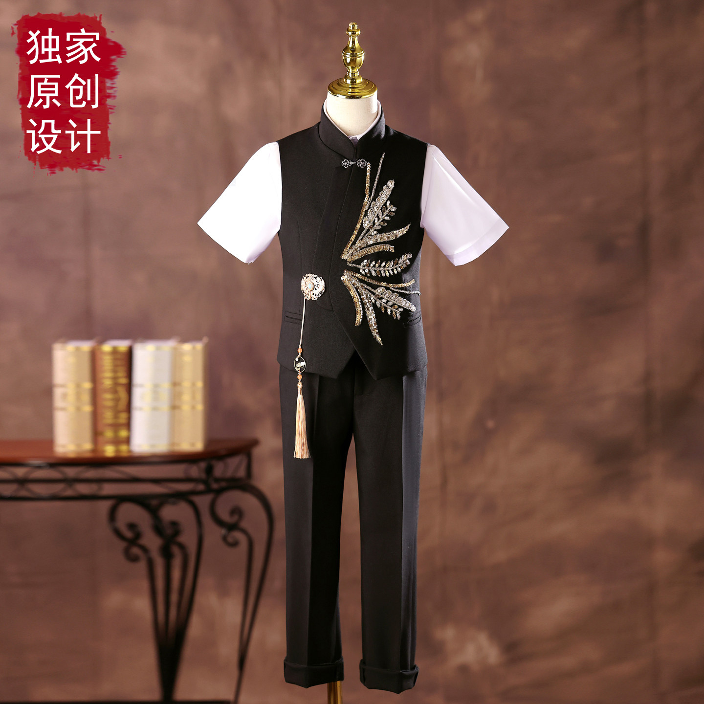 --------------------- 男童礼服新中式高端走秀朗诵主持人中国风中大童钢琴古筝演出服夏 --------------------- --------------------- 【原价】599元 【券后价】289元