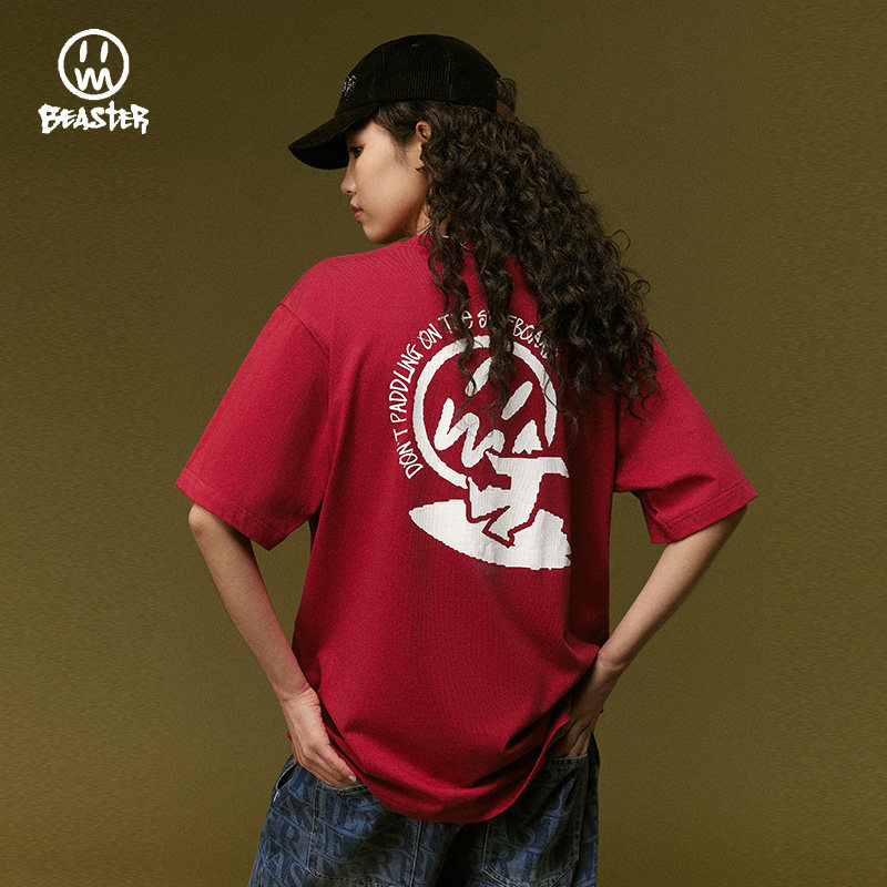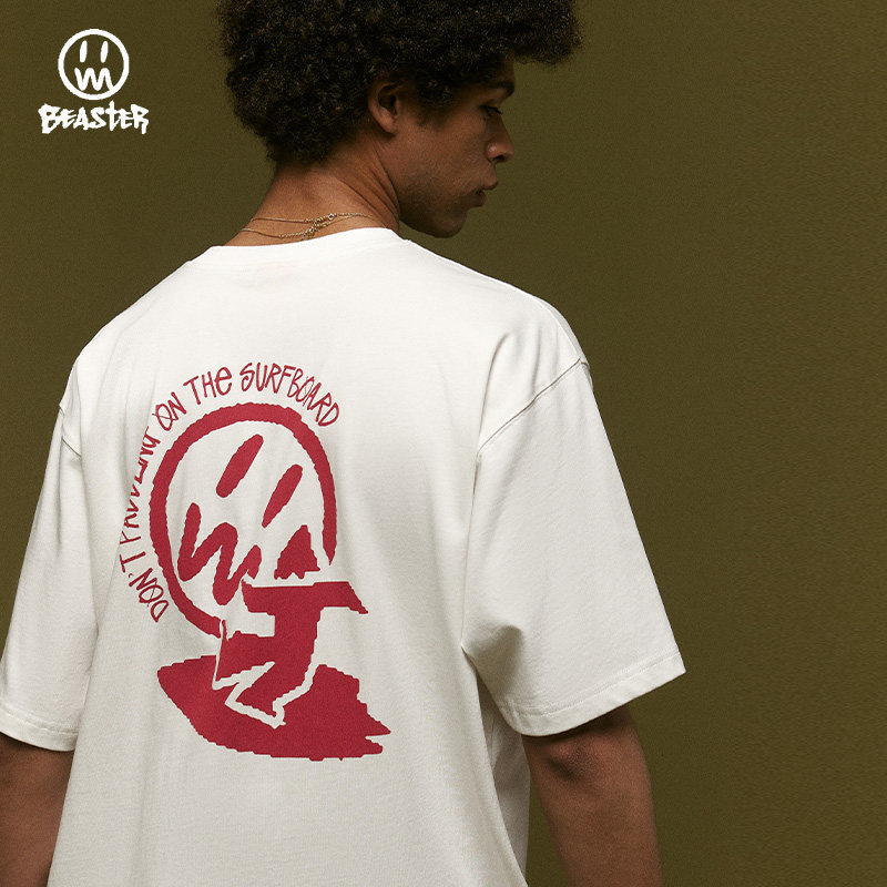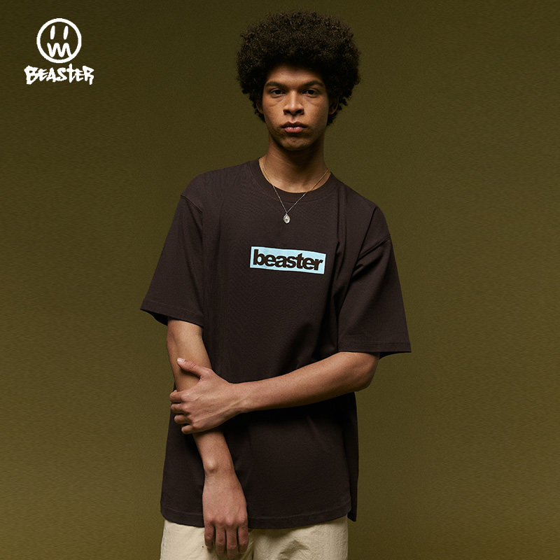 BEASTER鬼脸男士短袖t恤男宽松廓形黑色上衣美式潮牌情侣装