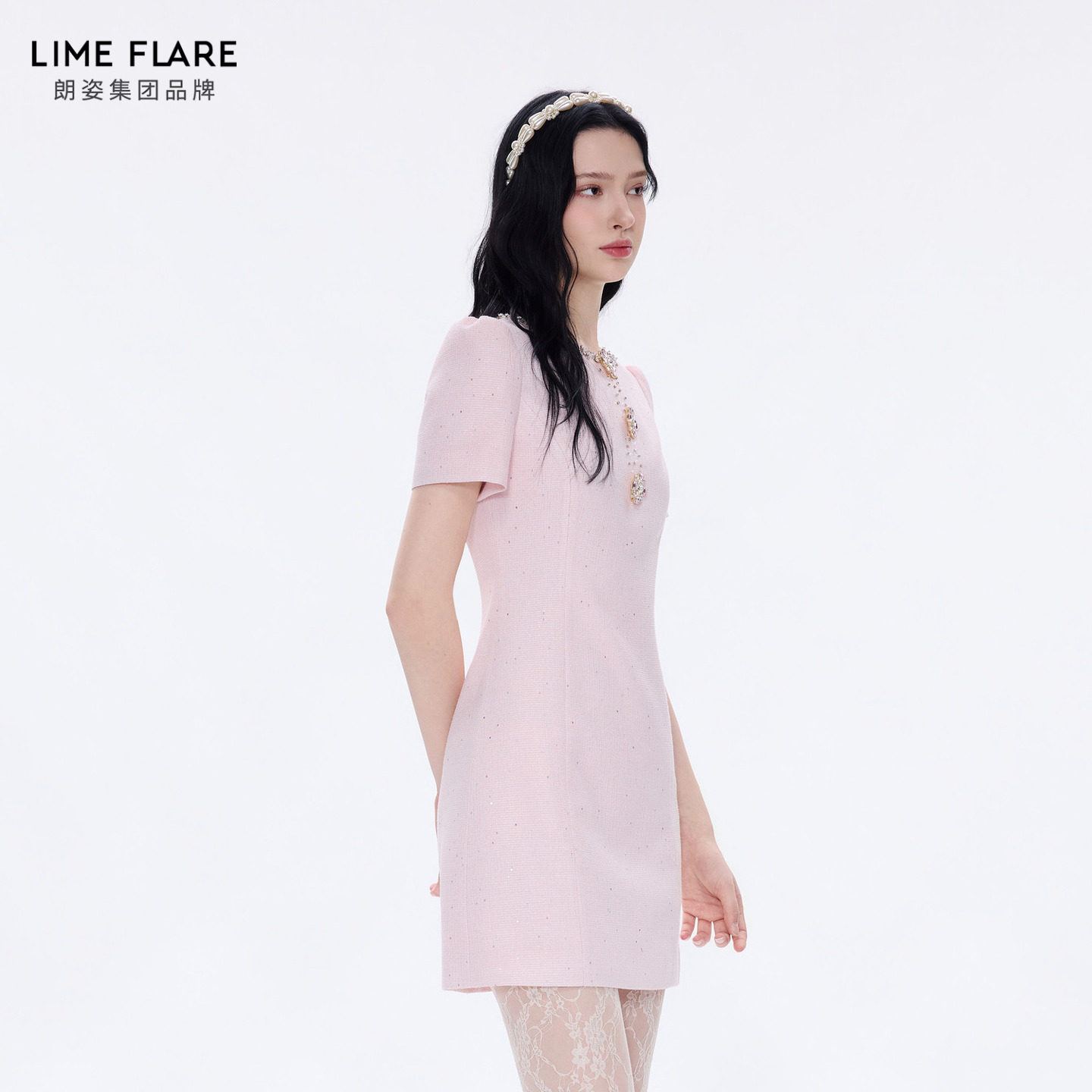 朗姿莱茵福莱尔钻饰千金风法式轻奢礼服裙气质短袖连衣裙26夏新款