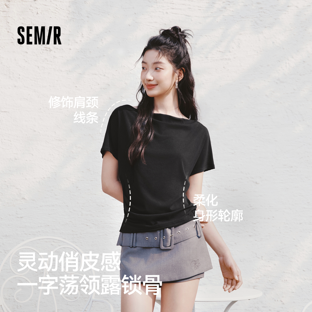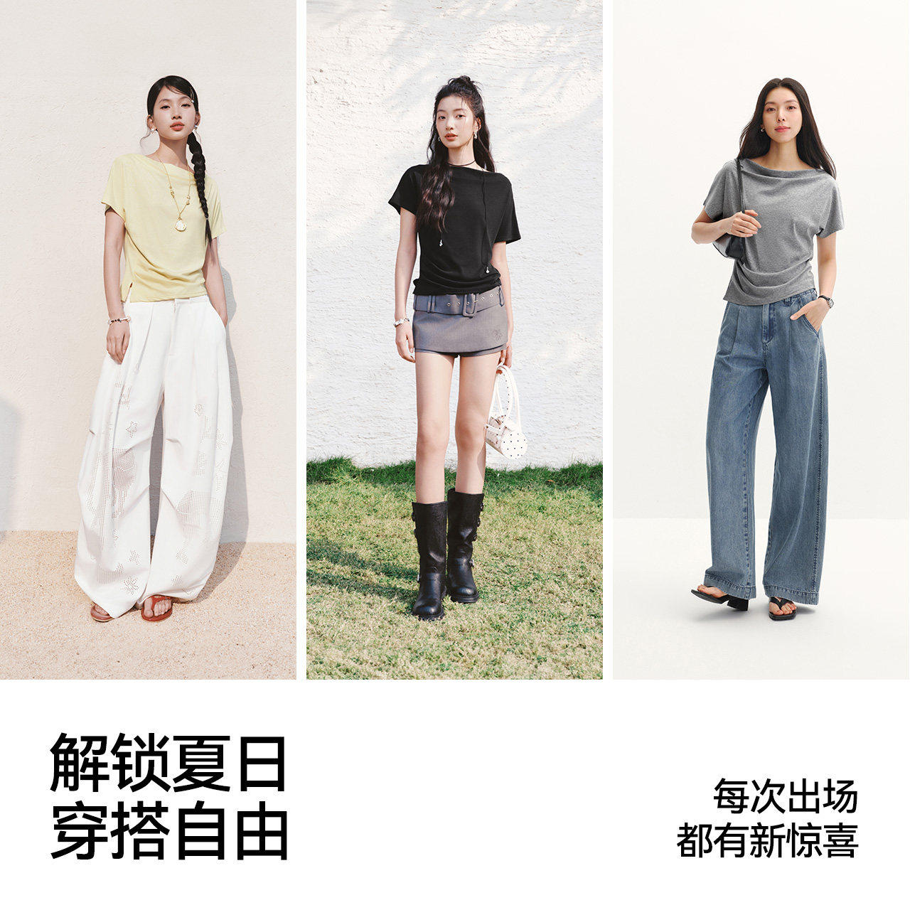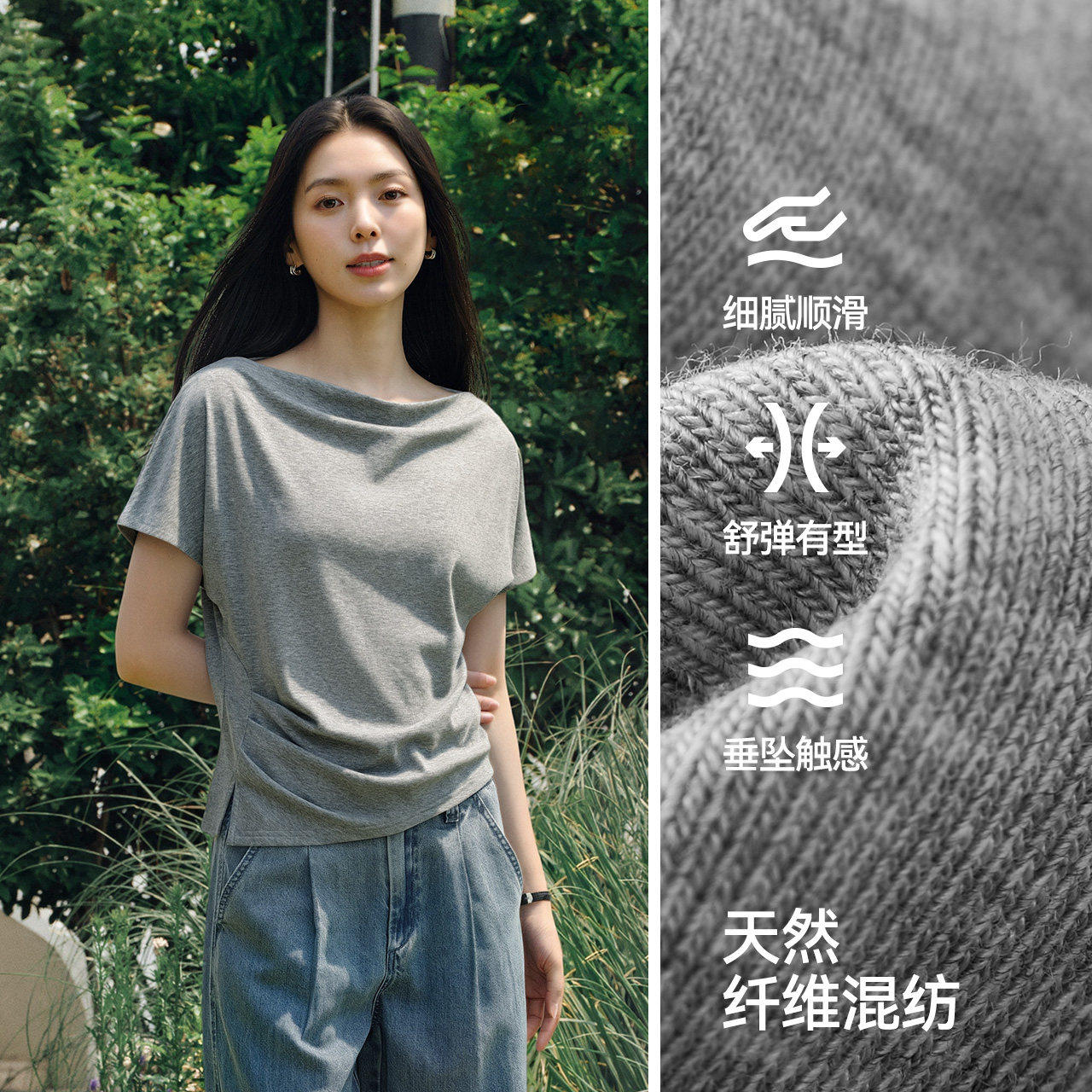 --------------------- 陈都灵|森马T恤女2026夏新款短款荡领分割褶皱修身连肩袖开叉衣服 【原售价】99元 【现售价】69元 【推荐理由】