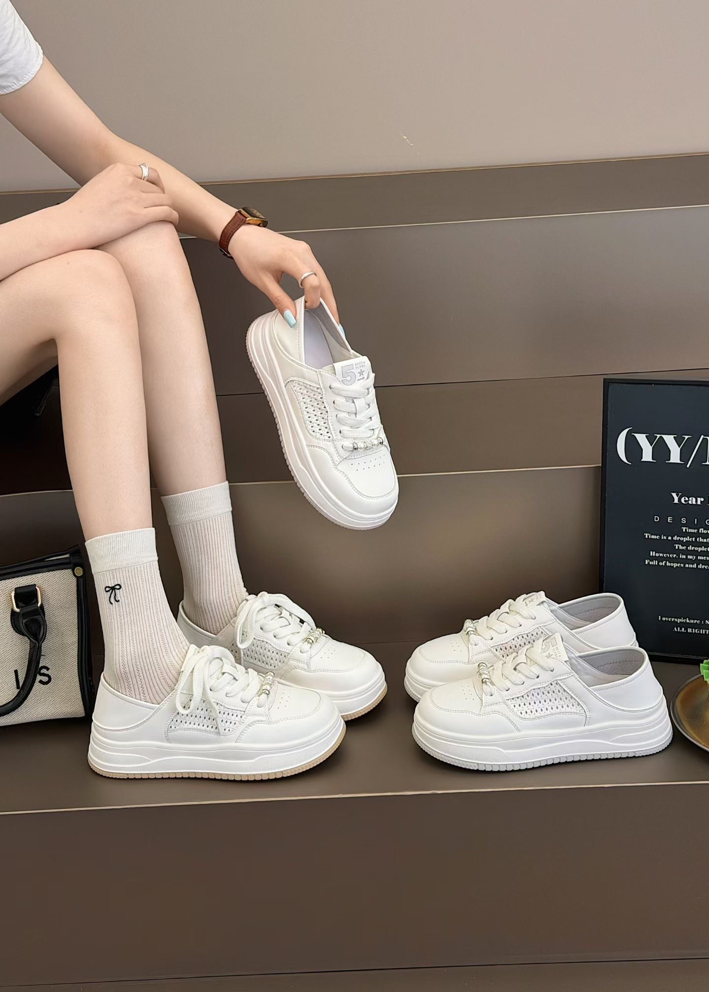 阳光壹佰2026春夏新款洞洞厚底板鞋舒适休闲运动鞋女ins潮小白鞋