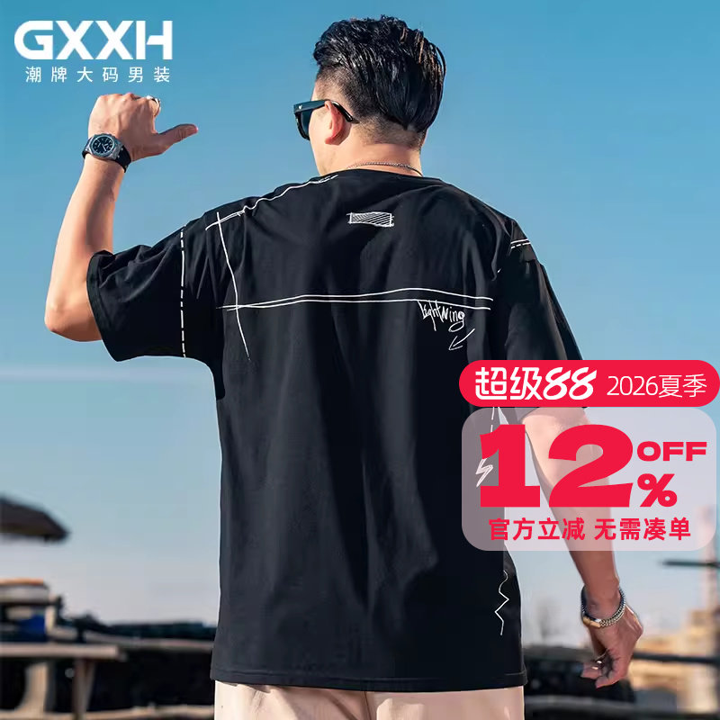 GxxH潮牌大码男装美式休闲短袖圆领男士T恤加肥加大夏季宽松上衣