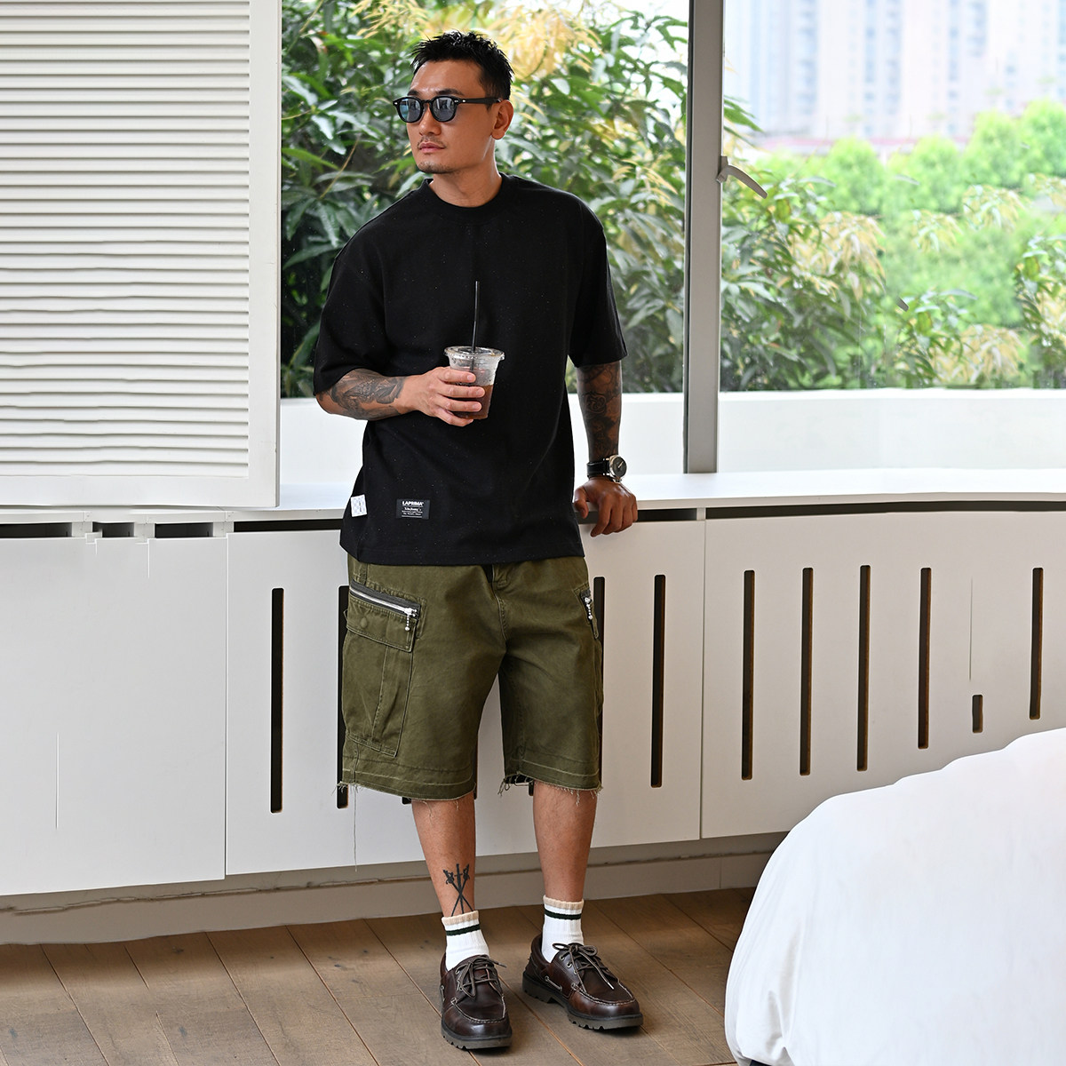LAPIVIMA ZIPPER POCKET CARGO SHORTS外置拉链多袋水洗工装短裤
