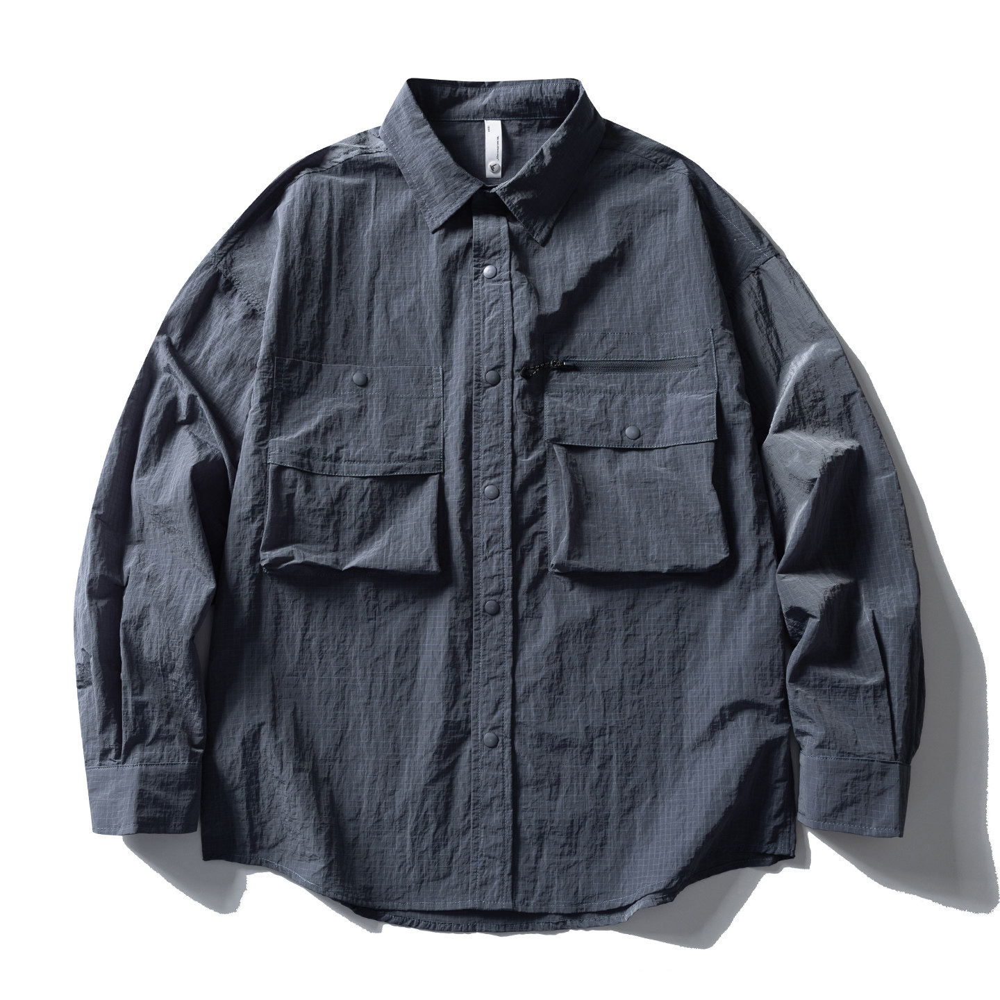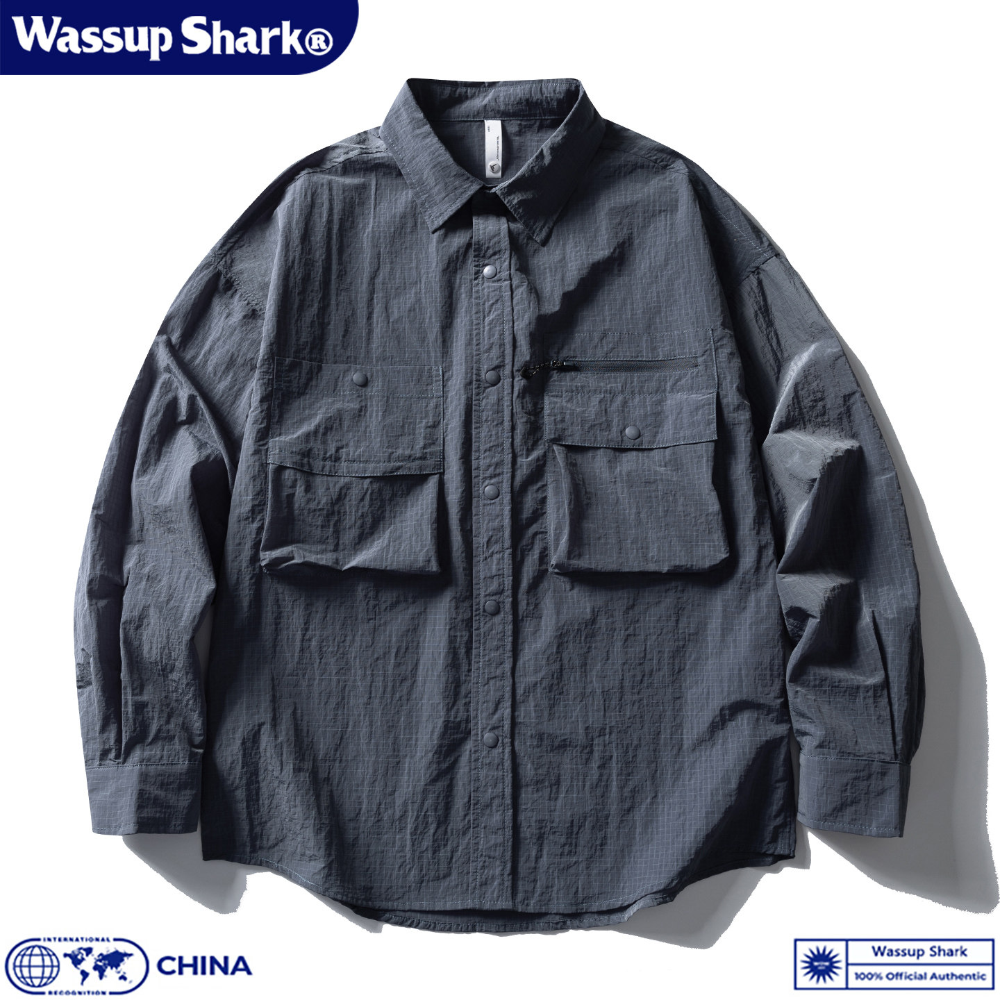 Wassup Shark山系复古工装大口袋长袖衬衫男初秋休闲宽松衬衣外套